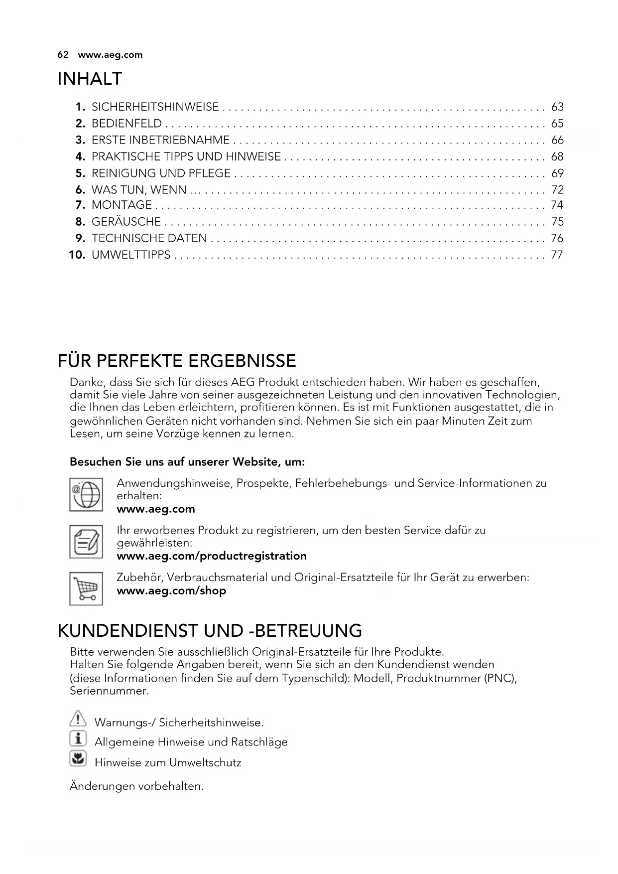 FÜR PERFEKTE ERGEBNISSE Danke, dass Sie sich für dieses AEG Produkt entschieden haben. Wir haben es geschaffen,