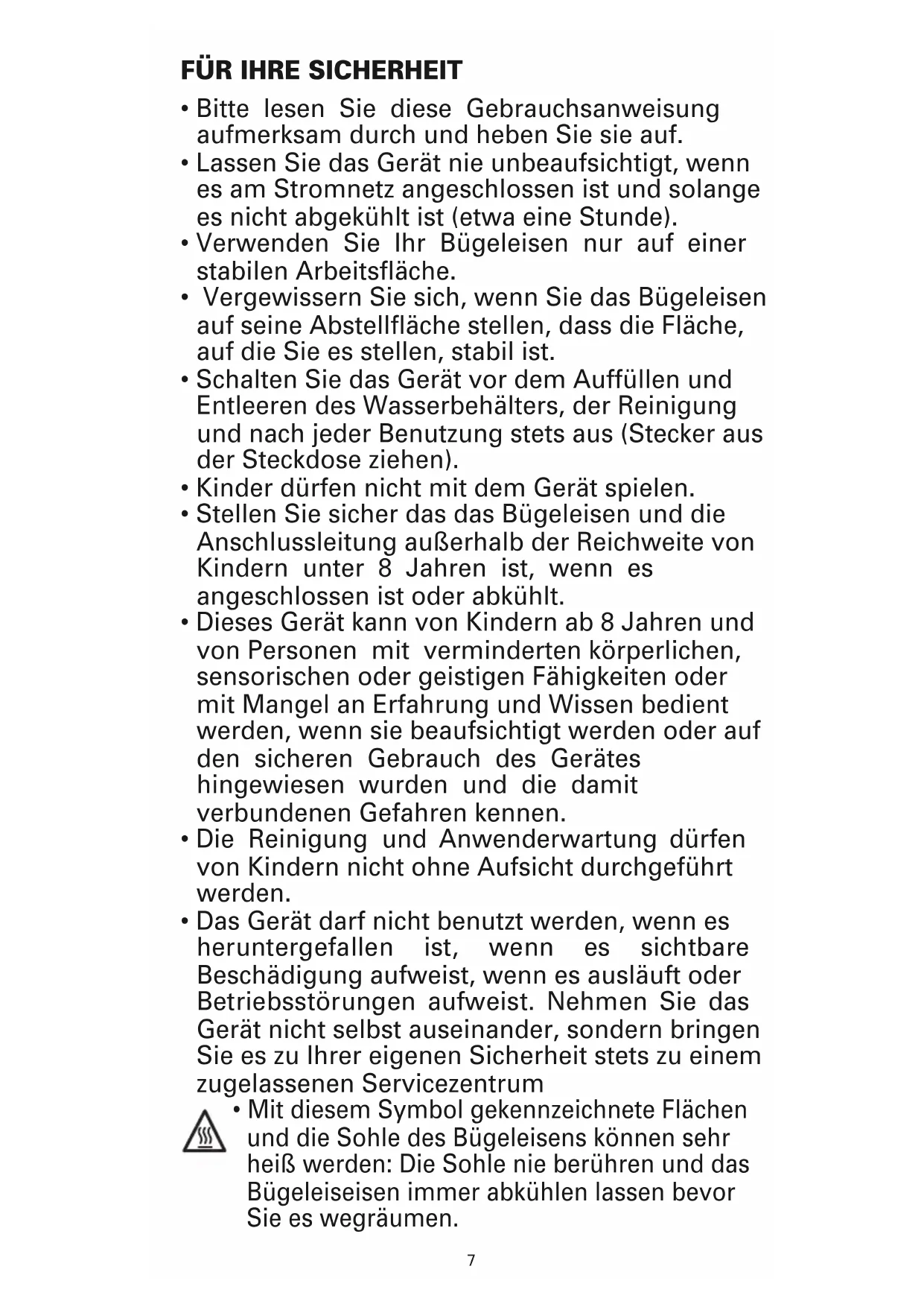 • Verwenden Sie Ihr Bügeleisen nur auf einer