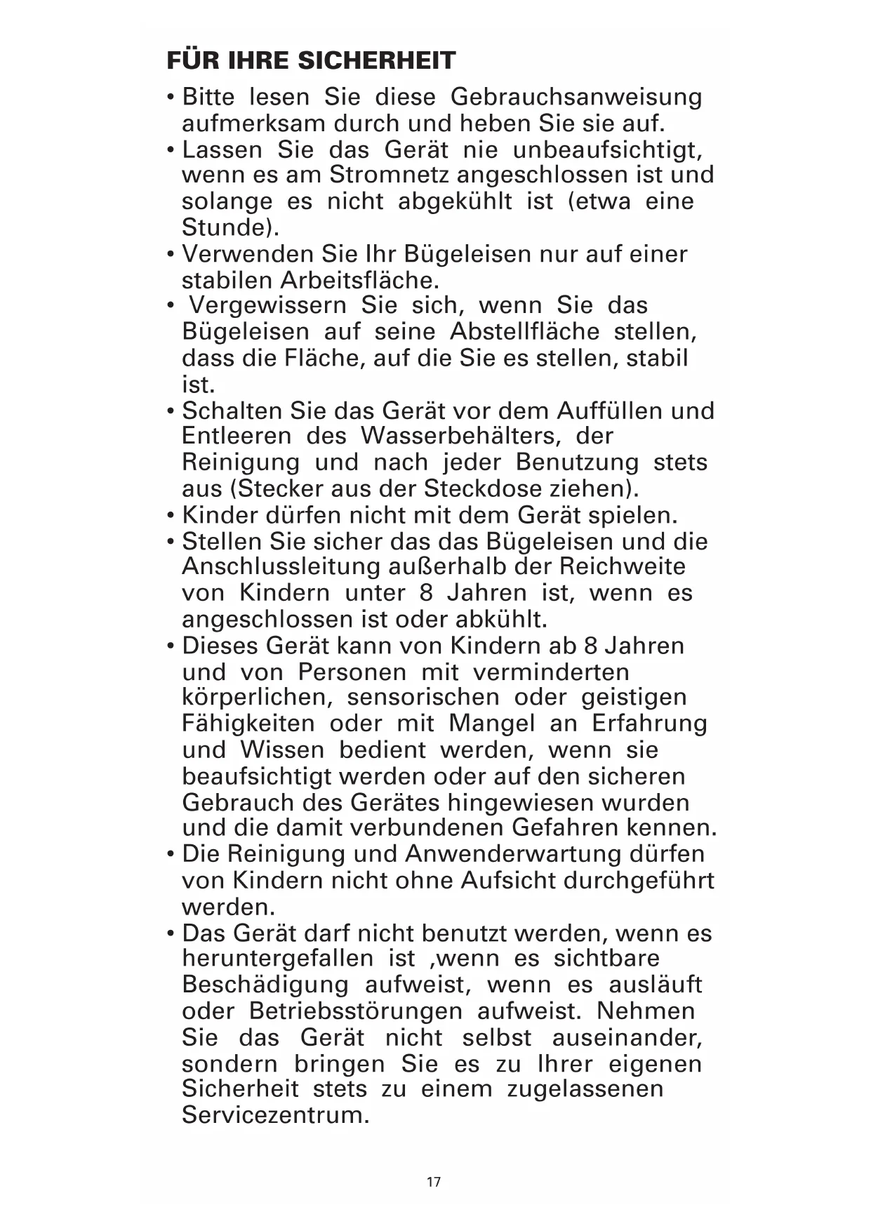 • Verwenden Sie Ihr Bügeleisen nur auf einer