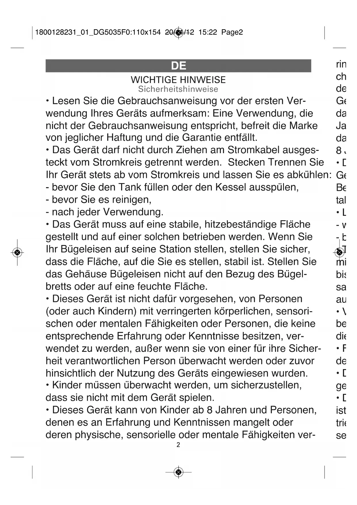 Laden Sie die Anleitung für Ihr Bügeleisen kostenlos im PDF-Format! Finden Sie Ihr Handbuch Master DG5030 - ROWENTA und nehmen Sie Ihr elektronisches Gerät wieder in die Hand. Auf dieser Seite sind alle Dokumente veröffentlicht, die für die Verwendung Ihres Geräts notwendig sind. Master DG5030 von der Marke ROWENTA.