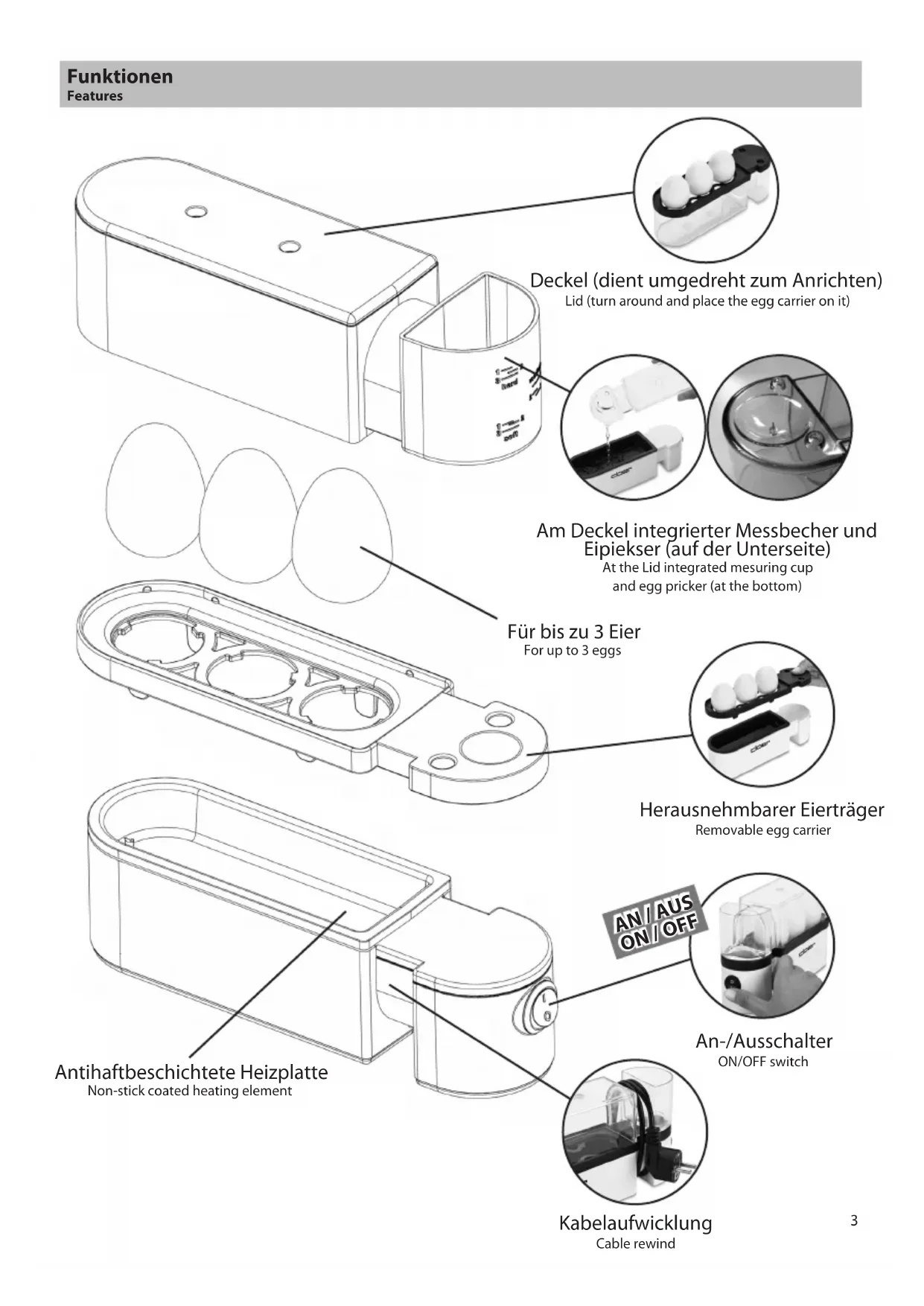 - In diesen Eierkocher können Sie 1 bis max. 3 Eier gleichzeitig kochen.