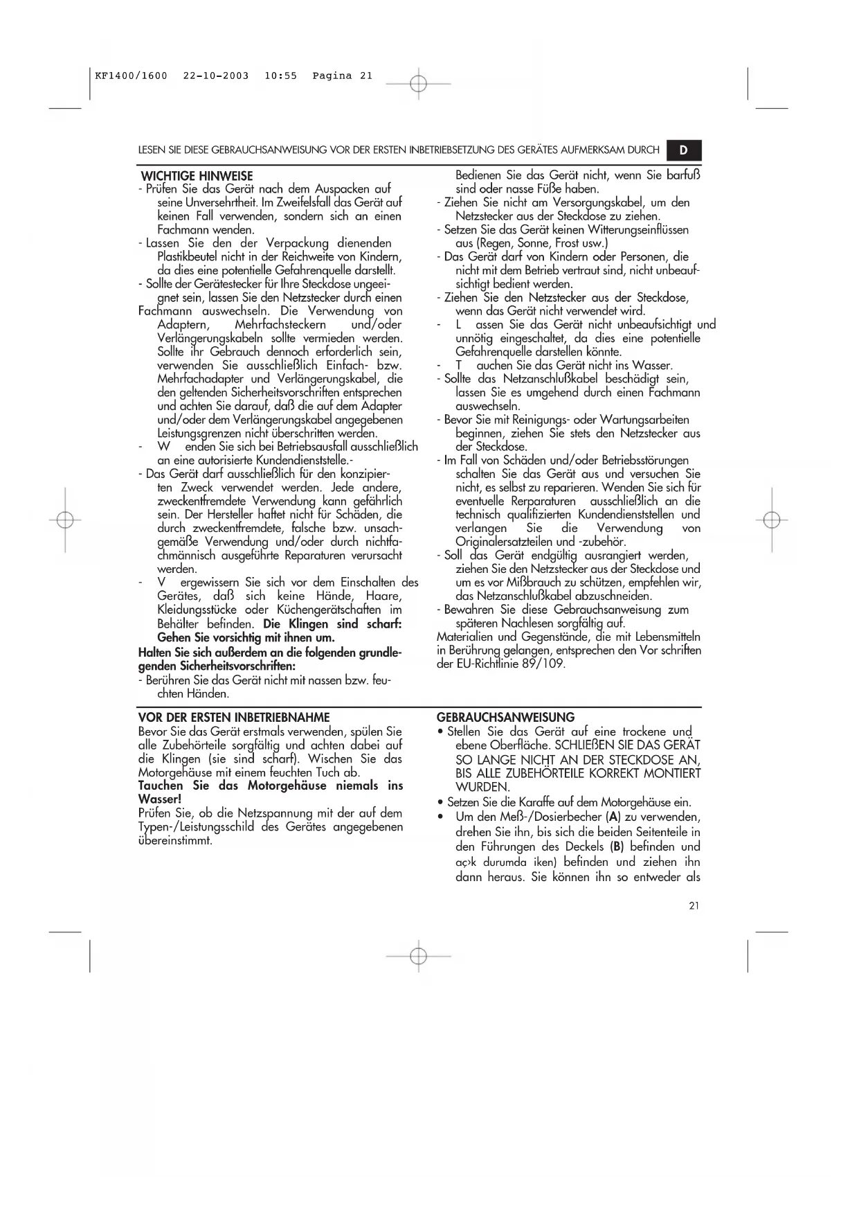 D KF1400/1600 22-10-2003 10:55 Pagina 21Meßbecher verwenden oder um während der