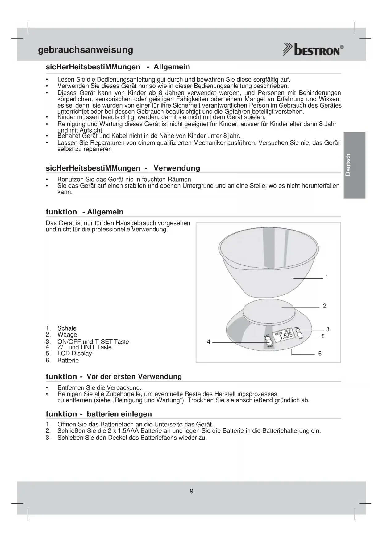 DEK4150 - Küchenwaage BESTRON - Kostenlose Bedienungsanleitung