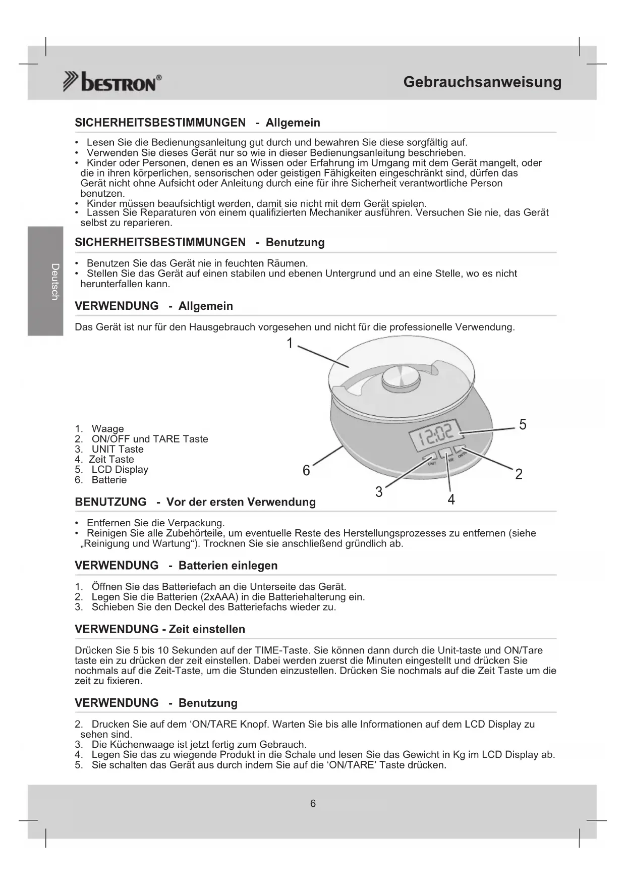 AKS140 - Küchenwaage BESTRON - Kostenlose Bedienungsanleitung
