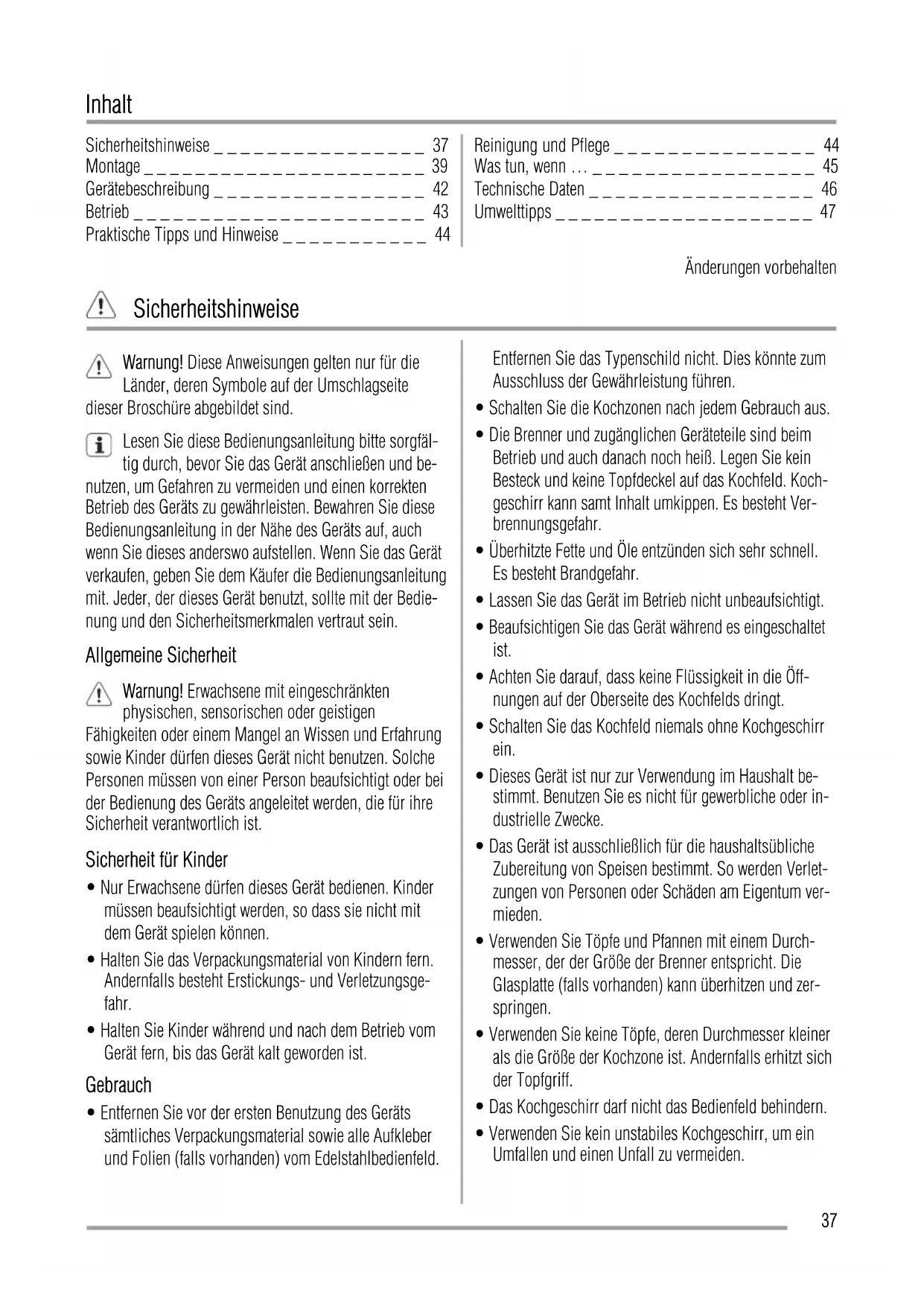 Sicherheitshinweise _ _ _ _ _ _ _ _ _ _ _ _ _ _ _ _ 37
