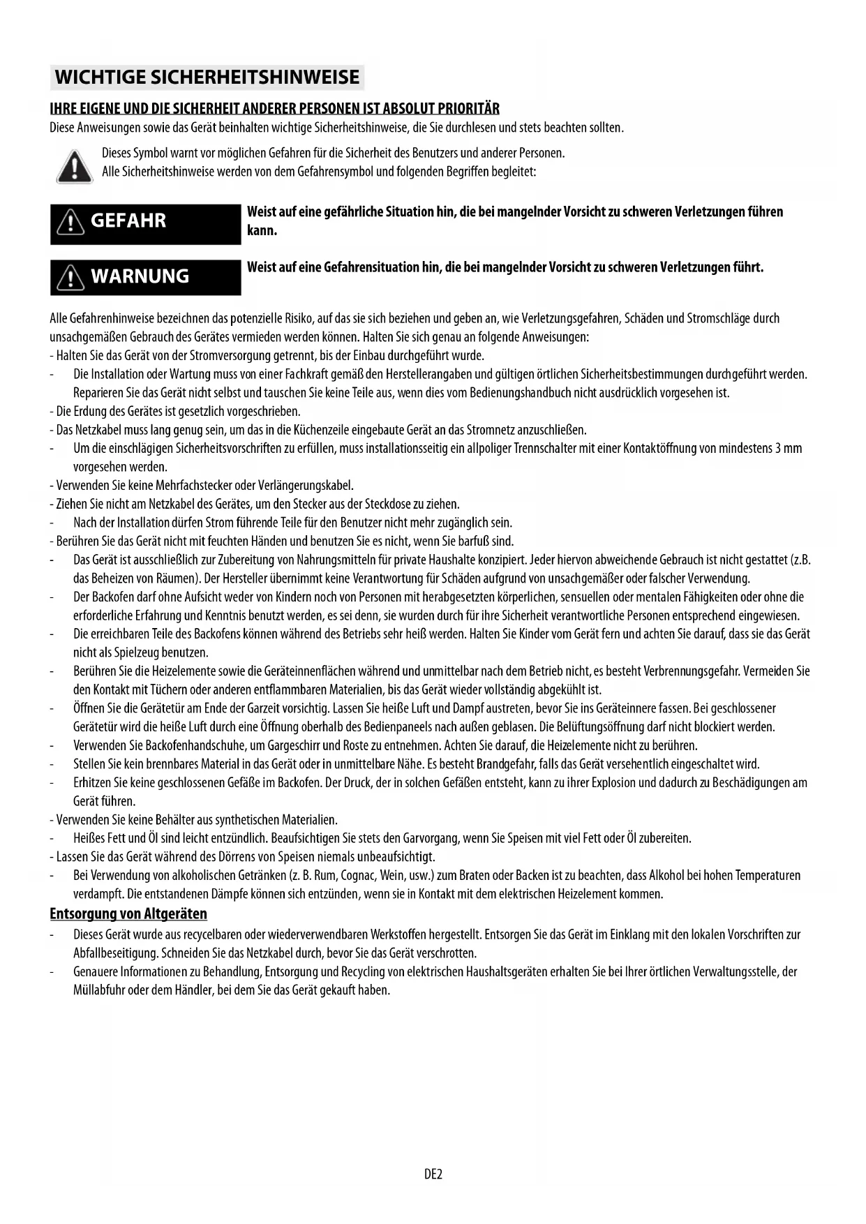 - Der Backofen darf ohne Aufsicht weder von Kindern noch von Personen mit herabgesetzten körperlichen, sensuellen oder mentalen Fähigkeiten oder ohne die