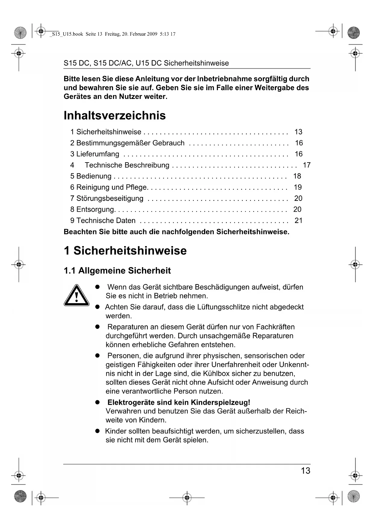 _S15_U15.book Seite 13 Freitag, 20. Februar 2009 5:13 17Sicherheitshinweise S15 DC, S15 DC/AC, U15 DC