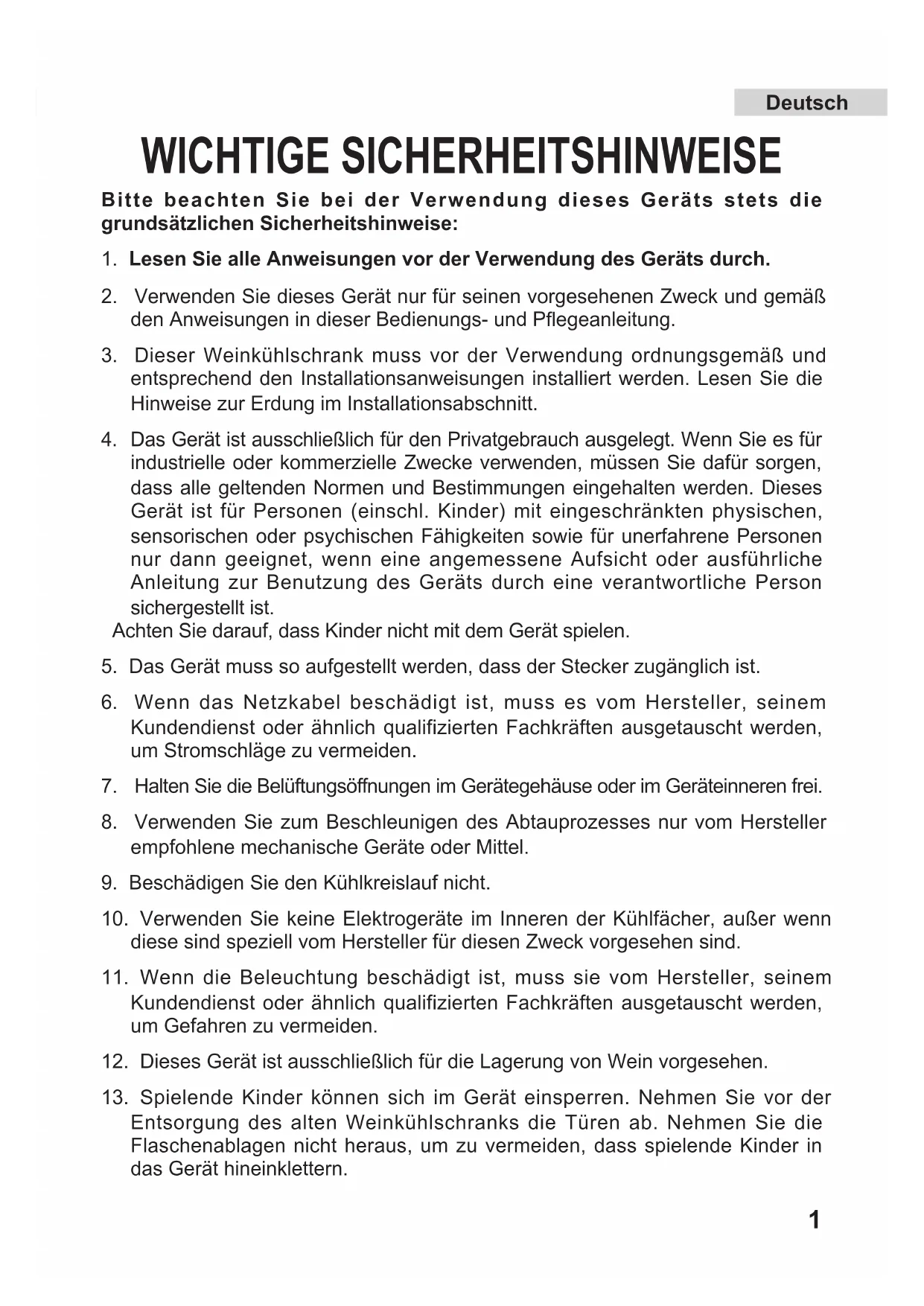 13. Spielende Kinder können sich im Gerät einsperren. Nehmen Sie vor der
