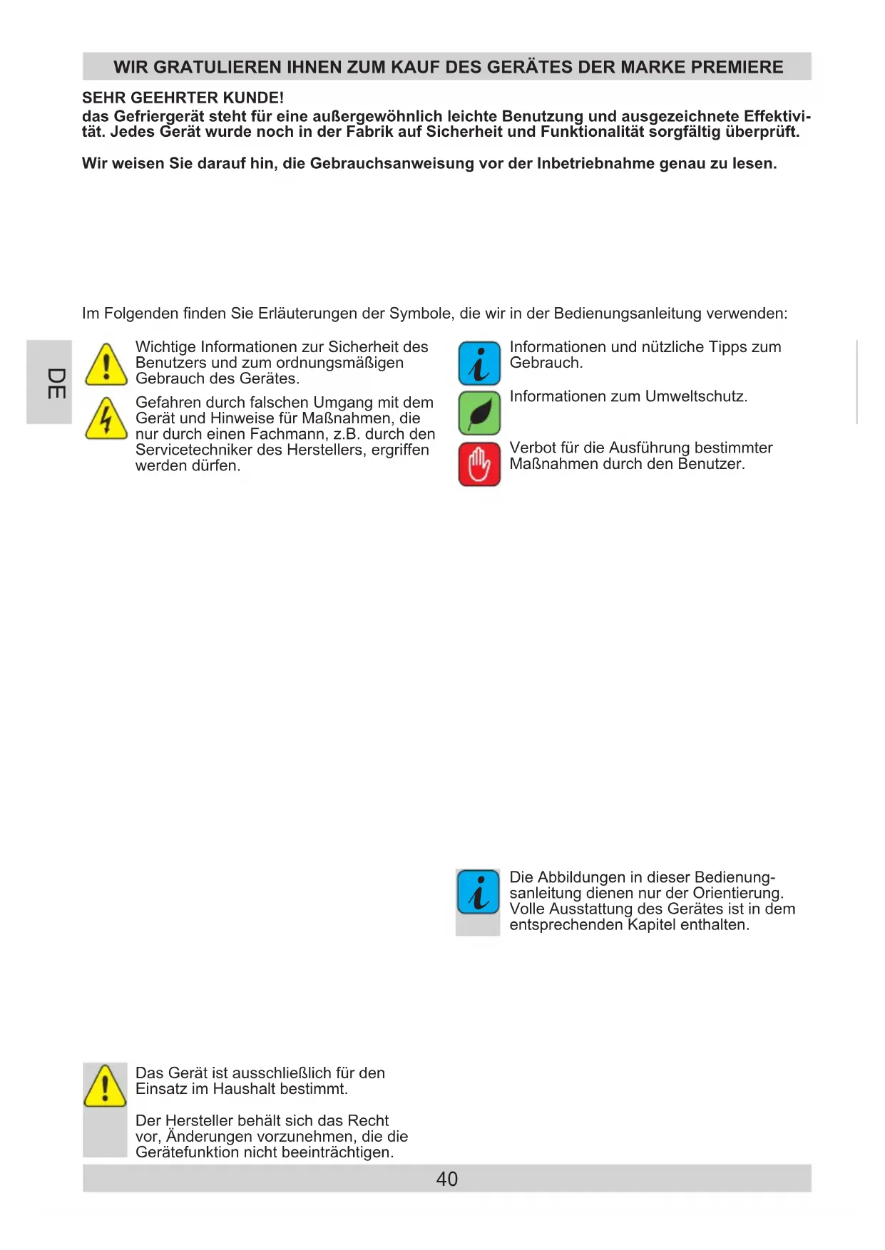 WIRGRATULIERENIHNENZUMKAUFDESGERÄTESDERMARKEPREMIERE Im Folgenden nden Sie Erläuterungen der Symbole, die wir in der Bedienungsanleitung verwenden: