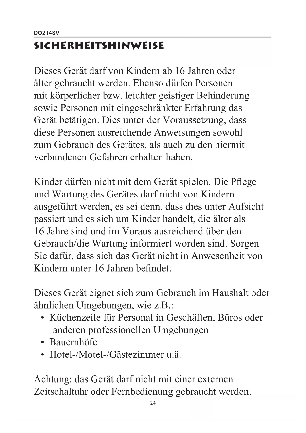 BEDIENUNGSANLEITUNG DO214SV DOMO