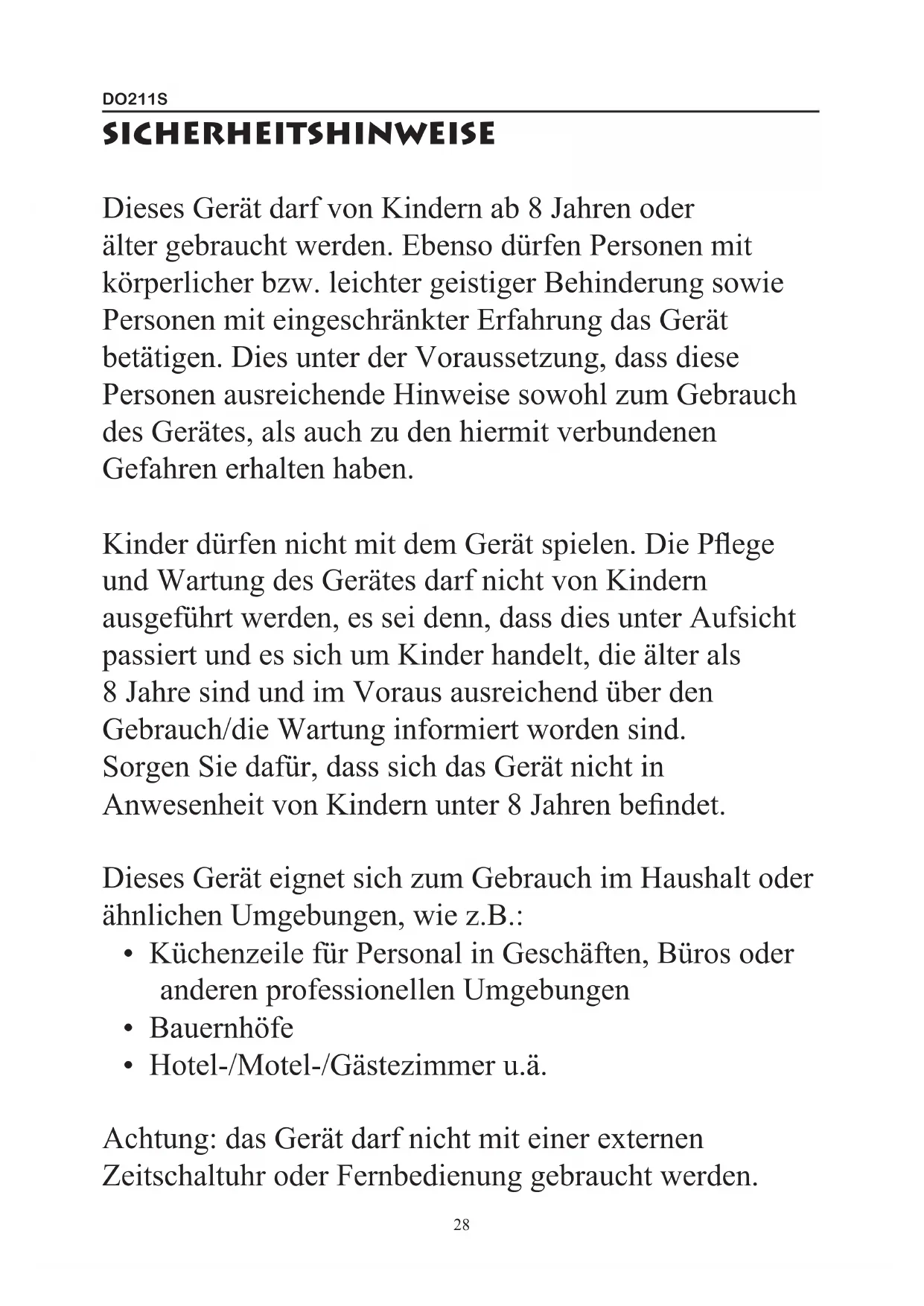 BEDIENUNGSANLEITUNG DO211S DOMO