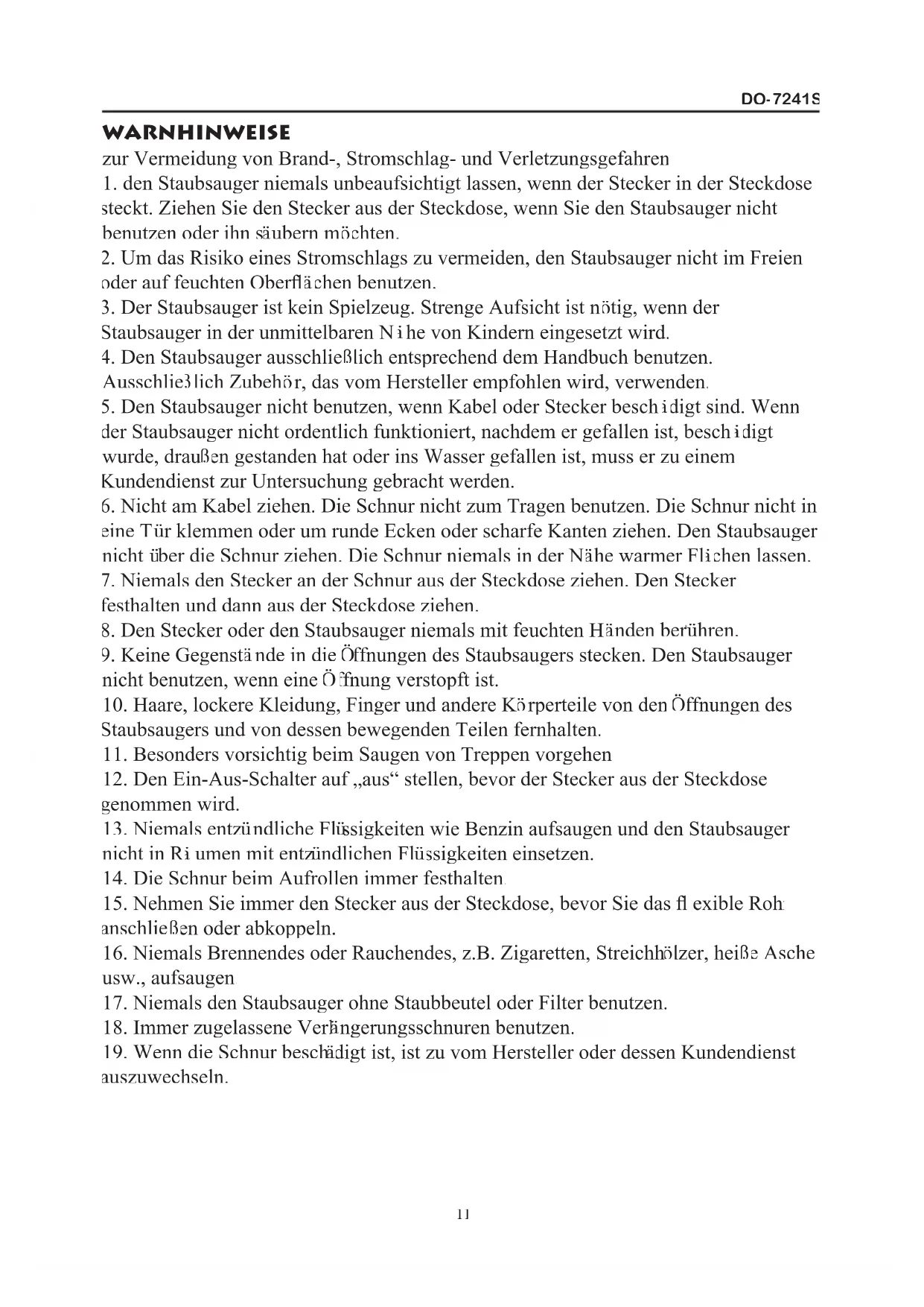 DO7241 - Staubsauger DOMO - Kostenlose Bedienungsanleitung