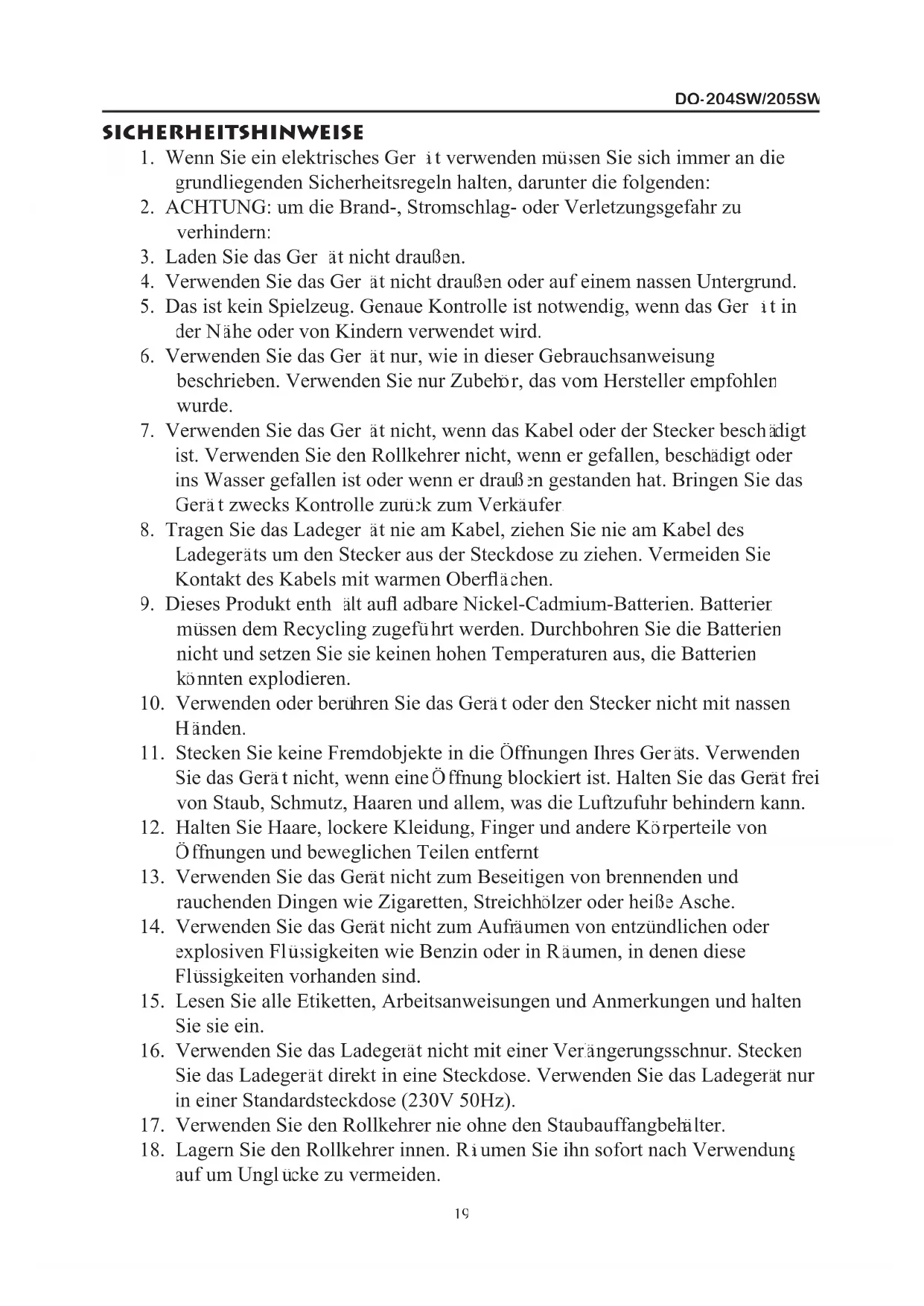 204SW/205SW SICHERHEITSHINWEISE