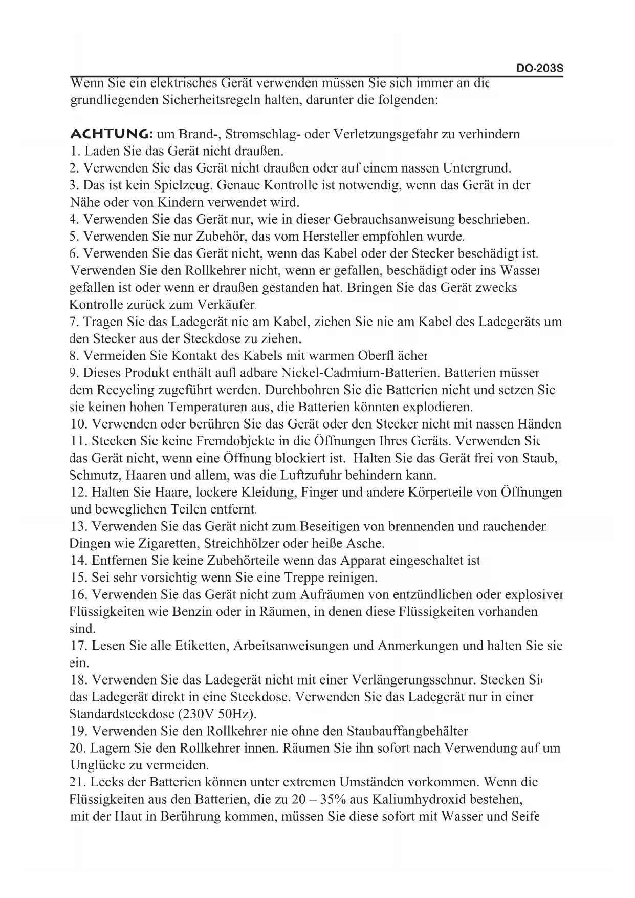 BEDIENUNGSANLEITUNG DO203S DOMO