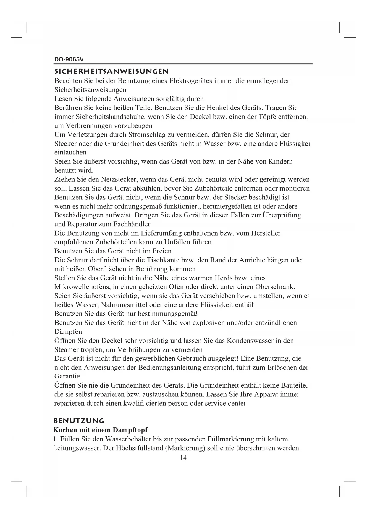 BEDIENUNGSANLEITUNG DO9065V DOMO