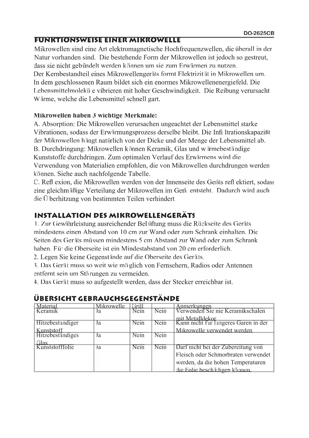 nnen. Siehe auch nachfolgende Tabelle. C. Refl exion, die Mikrowellen werden von der Innenseite des Ger