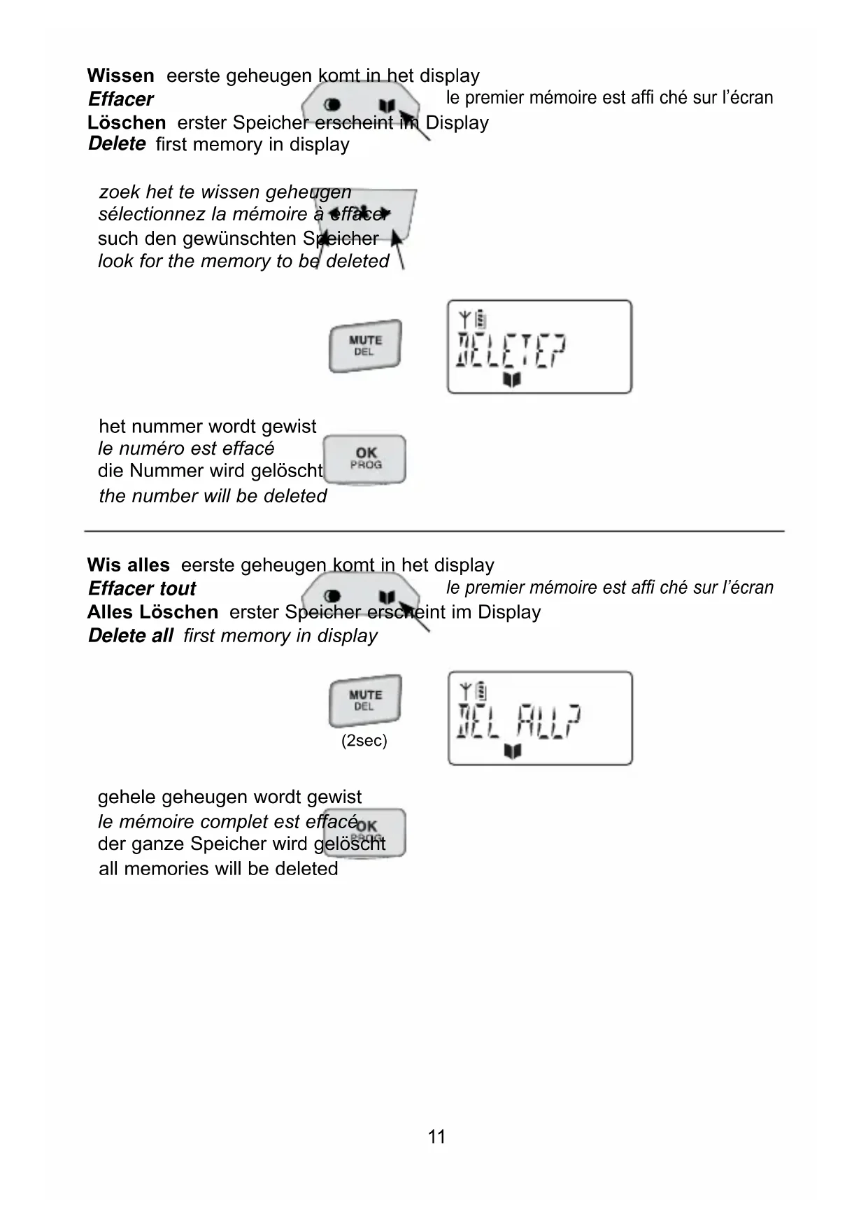 le mémoire complet est efface OK der ganze Speicher wird gelöscht all memories will be deleted