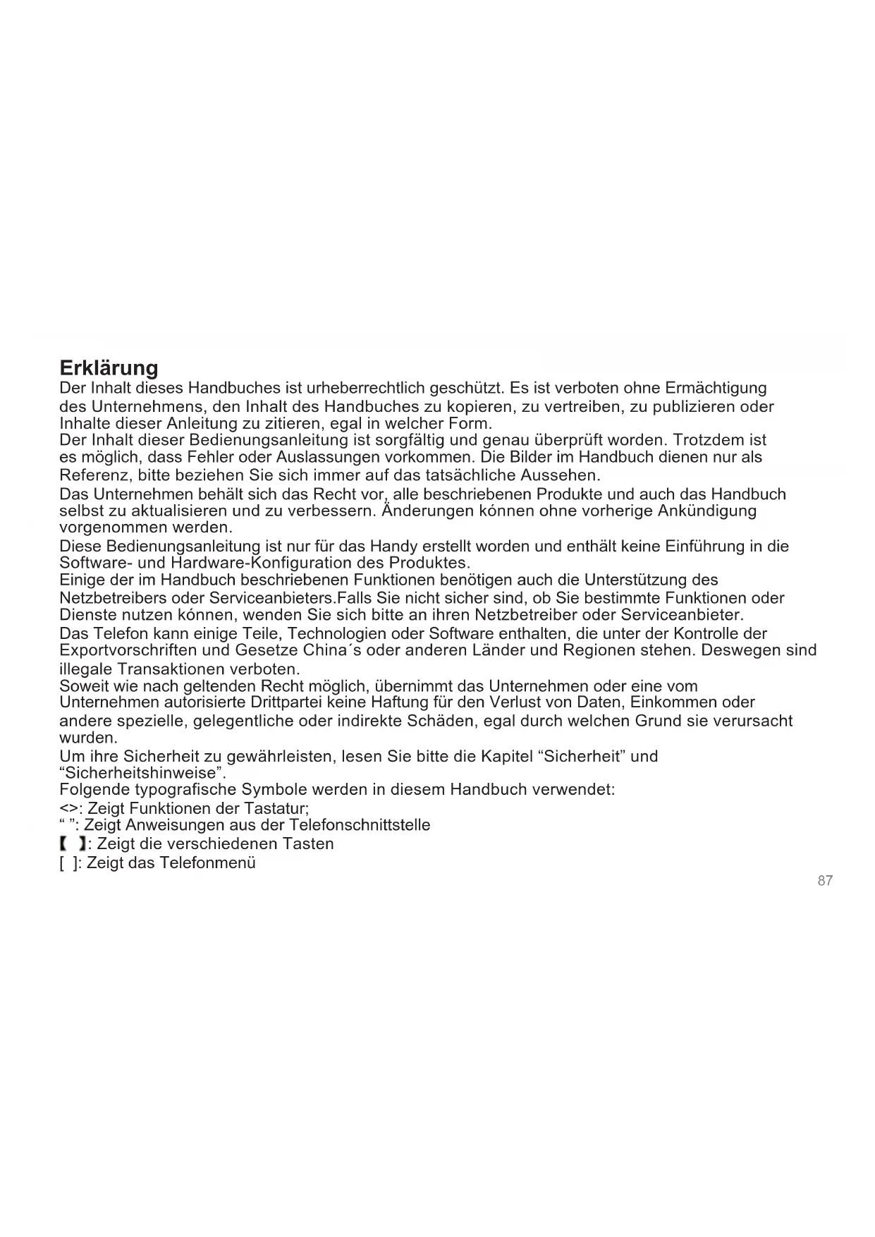 Dieses schützt ihr Telefon vor unbefugten Personen. Sie konnen das voreingestelle Password eingeben, wenn Sie ihr Telefon zum ersten Mal benutzen. Ändern Sie danachitte so bald wie möglich das Telefonpassword und halten sie es geheim.