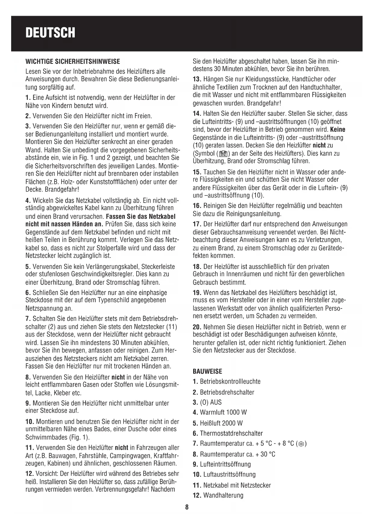 WICHTIGE SICHERHEITSHINWEISE Lesen Sie vor der Inbetriebnahme des Heizlüfters alle