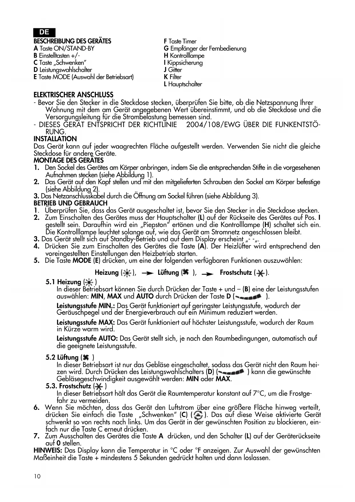 BESCHREIBUNG DES GERÄTES A Taste ON/STAND-BY B Einstelltasten +/-