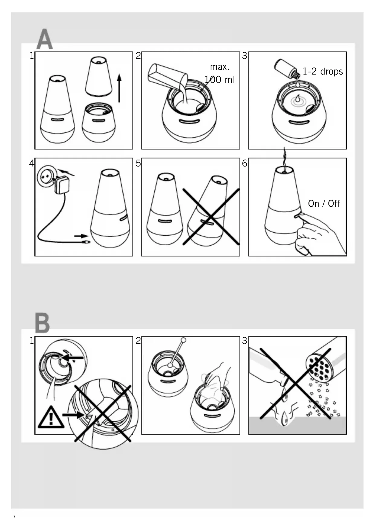2 Tropfen SOEHNLE Duftöl einfüllen. Oberteil pass genau aufsetzen.