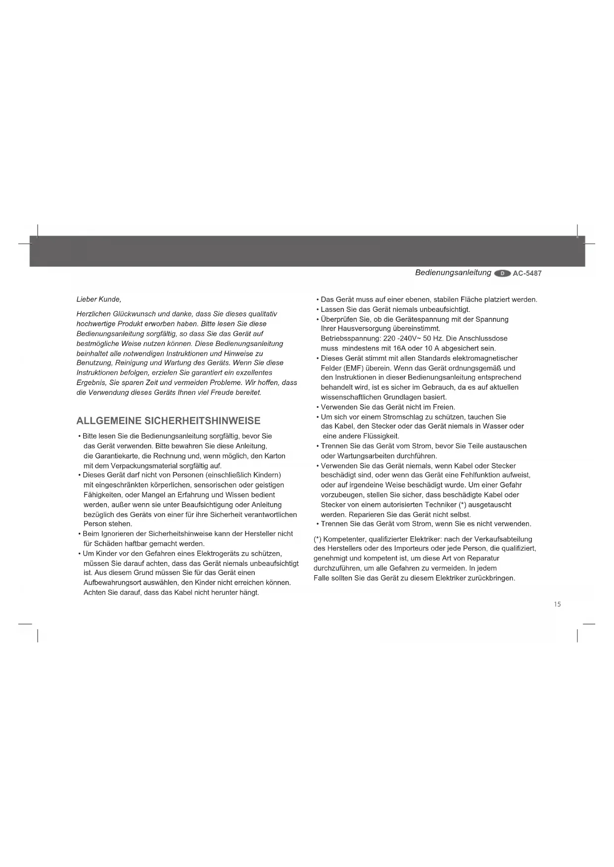 •Nennspannung:220-240V~50Hz.