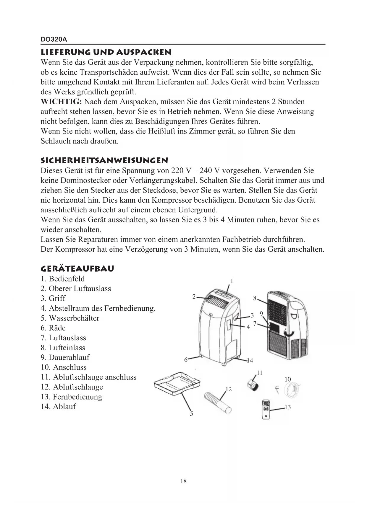 DO320A - Klimaanlage DOMO - Kostenlose Bedienungsanleitung