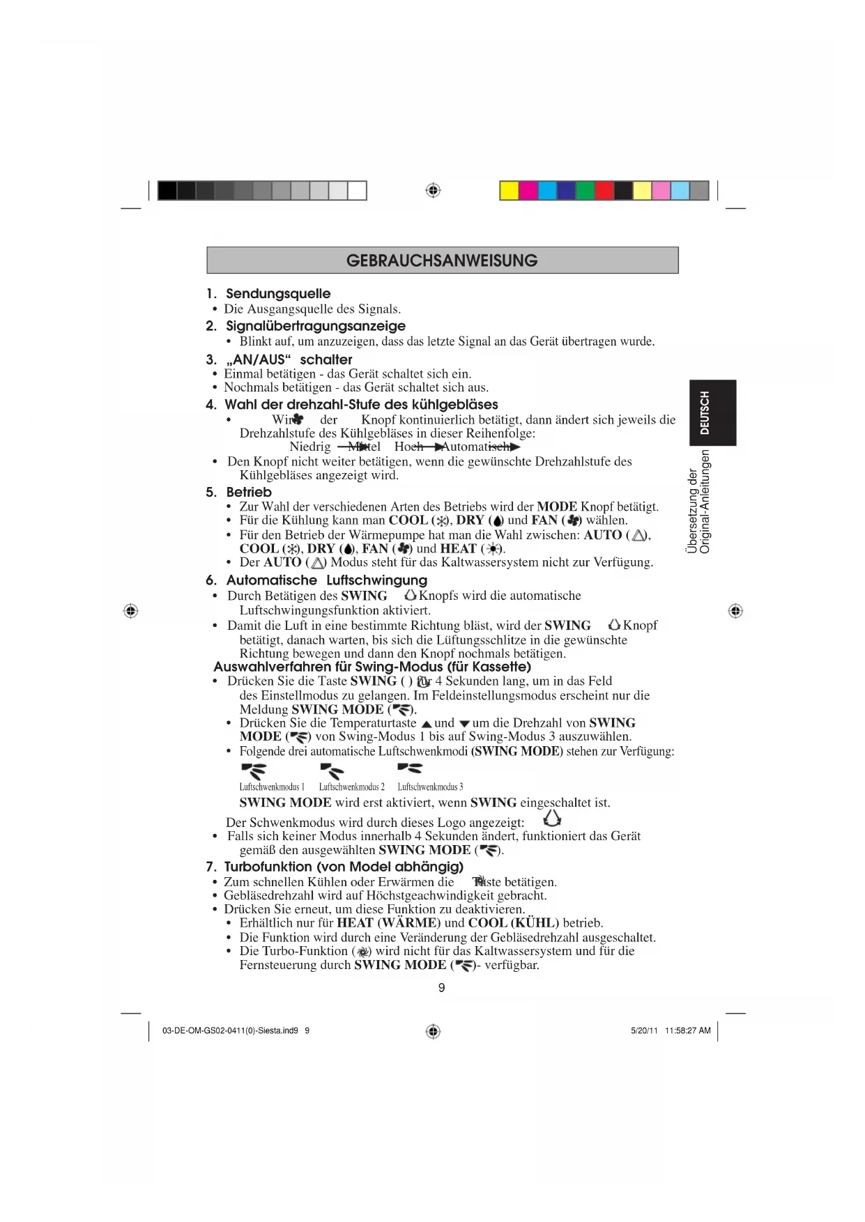 Fernsteuerung durch SWING MODE ( )- verfügbar.