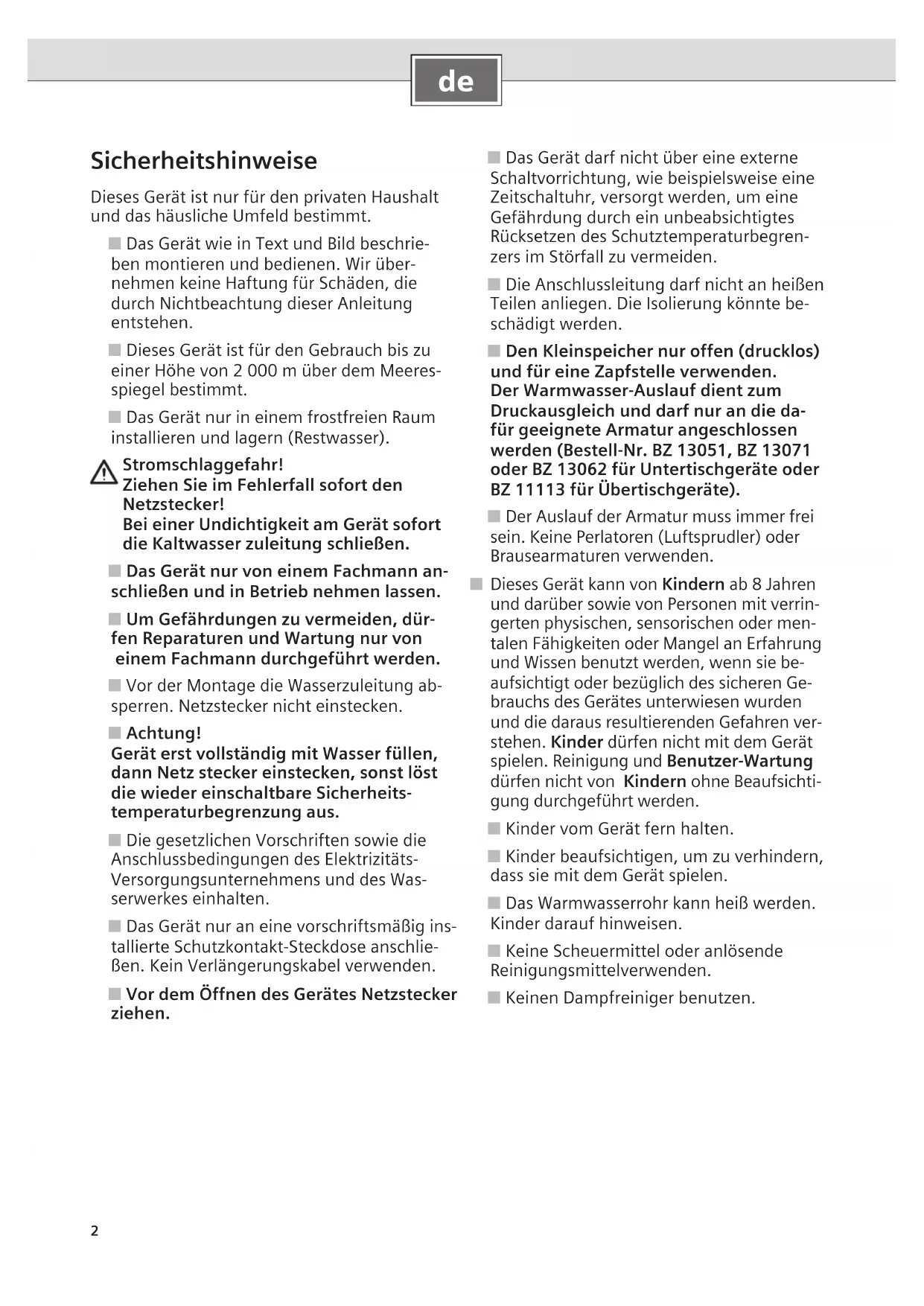 BZ 11113 für Übertischgeräte).
