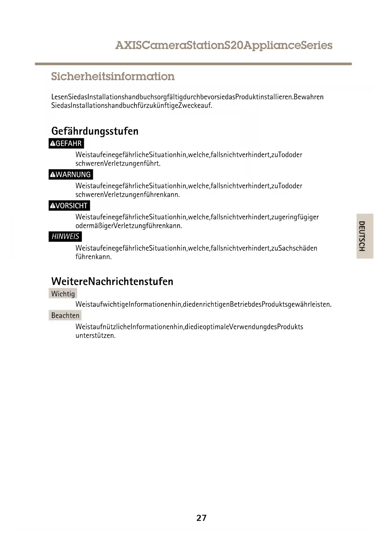 LesenSiedieSicherheitsinformationenindiesemDokument,bevorSiedieAnweisungenindiesenAbschnittdurchführungWeitererformationerfindenerSieteunterwww-axis.com.