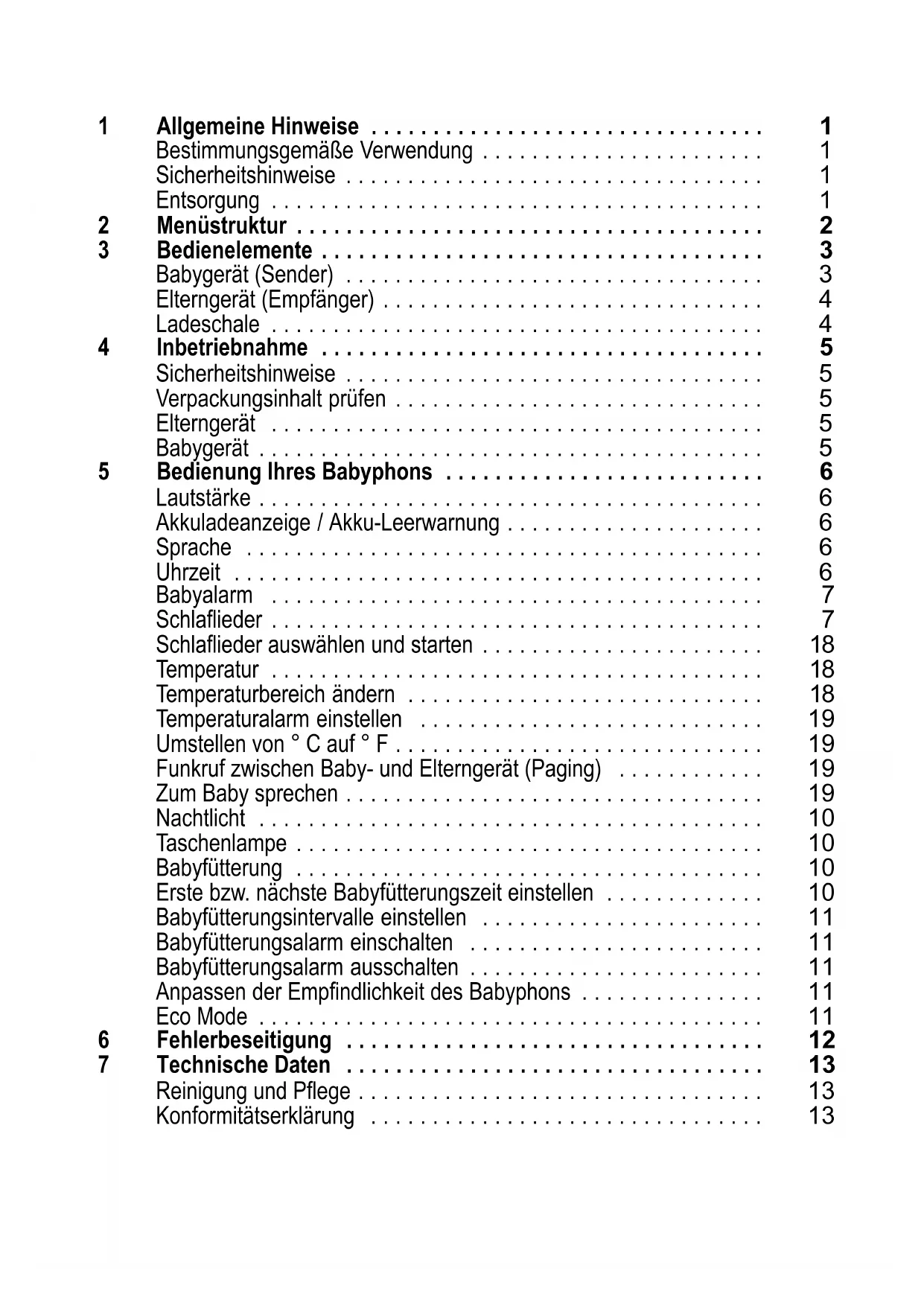 Das Babyphon wurde entwickelt, um Ihnen zusätzliche Sicherheit zu bieten, wenn Sie einmal nicht im selbst Zimmer wie Ihr Baby sein konnen. Es ist KEIN Ersatz für das Aufpassen durch Erwachsene. Wahrend der Benutzung muss sich ein Elternteil immer in Reichweite des Babyphons aufhalten. Ihr Babyphon ist:weder ein medizinisches Gerät noch kann es den "plötzlichen Kindstod"verhindern. Verlassen Sie sich in Bezug auf das Wohlbefinden Ihres Kindes nicht auf diesen Gerät. Überprüfen Sie regelmäßig persönlich, ob es Ihr hem Kind gut gehen.