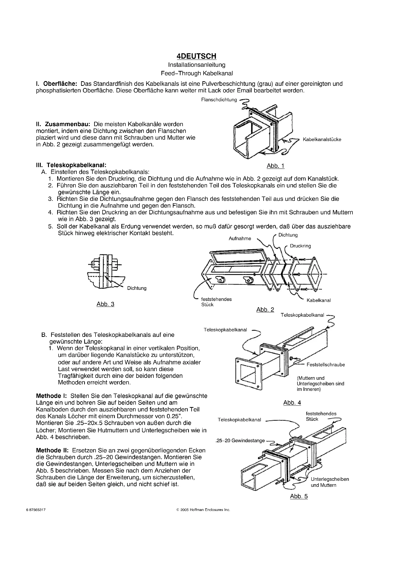 - Soll der Kabelkanal als Erdung verwendet werden, so muß davon geforsorgt werden, daß über das ausziehbare Stück hinweg elektrischer Kontakt besteht. Dichtung