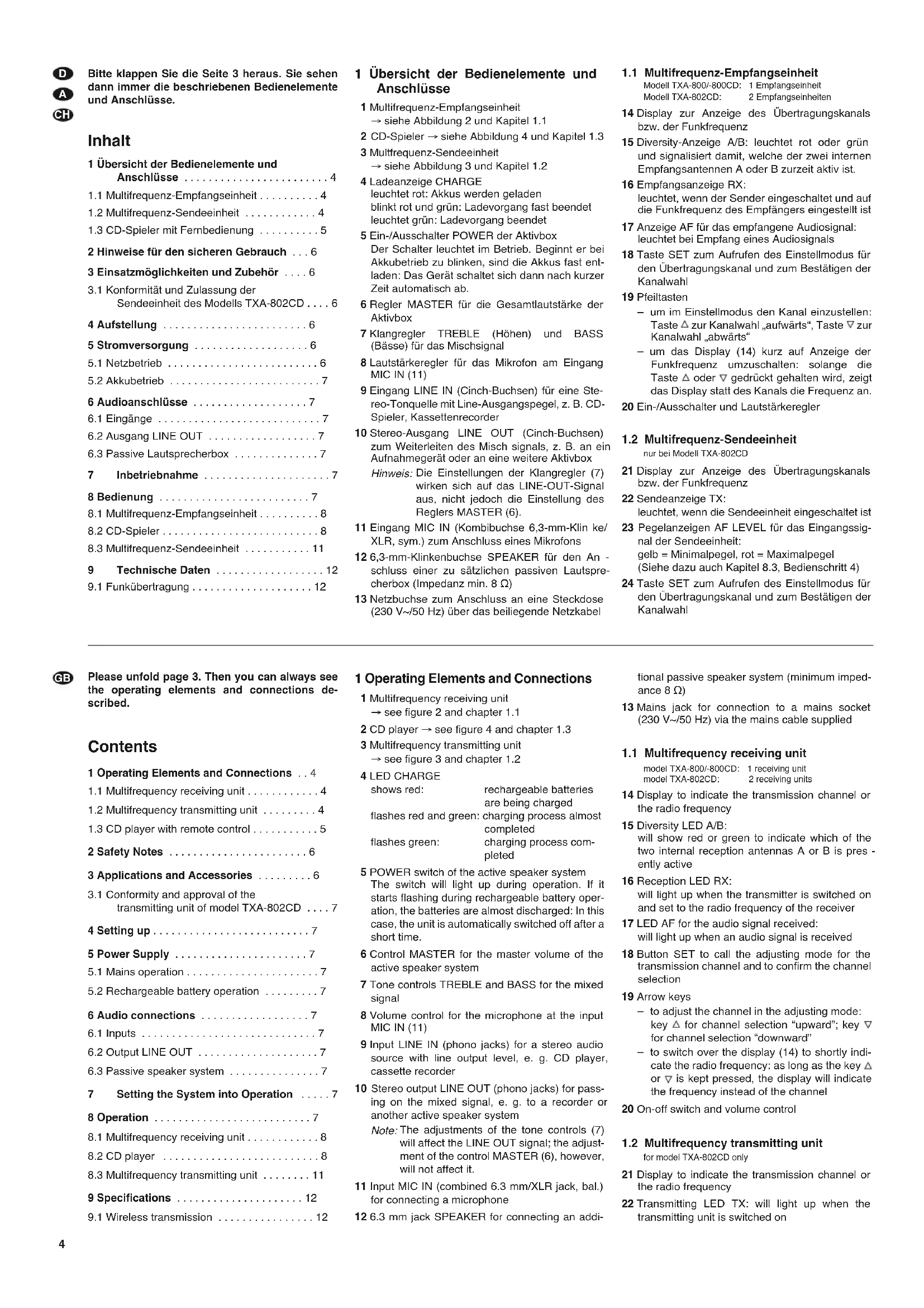 1.1 Multifrequenz-Empfangseinheit Modell TXA-800/-800CD: 1 Empfangseinheit Modell TXA-802CD: 2 Empfangseinheit