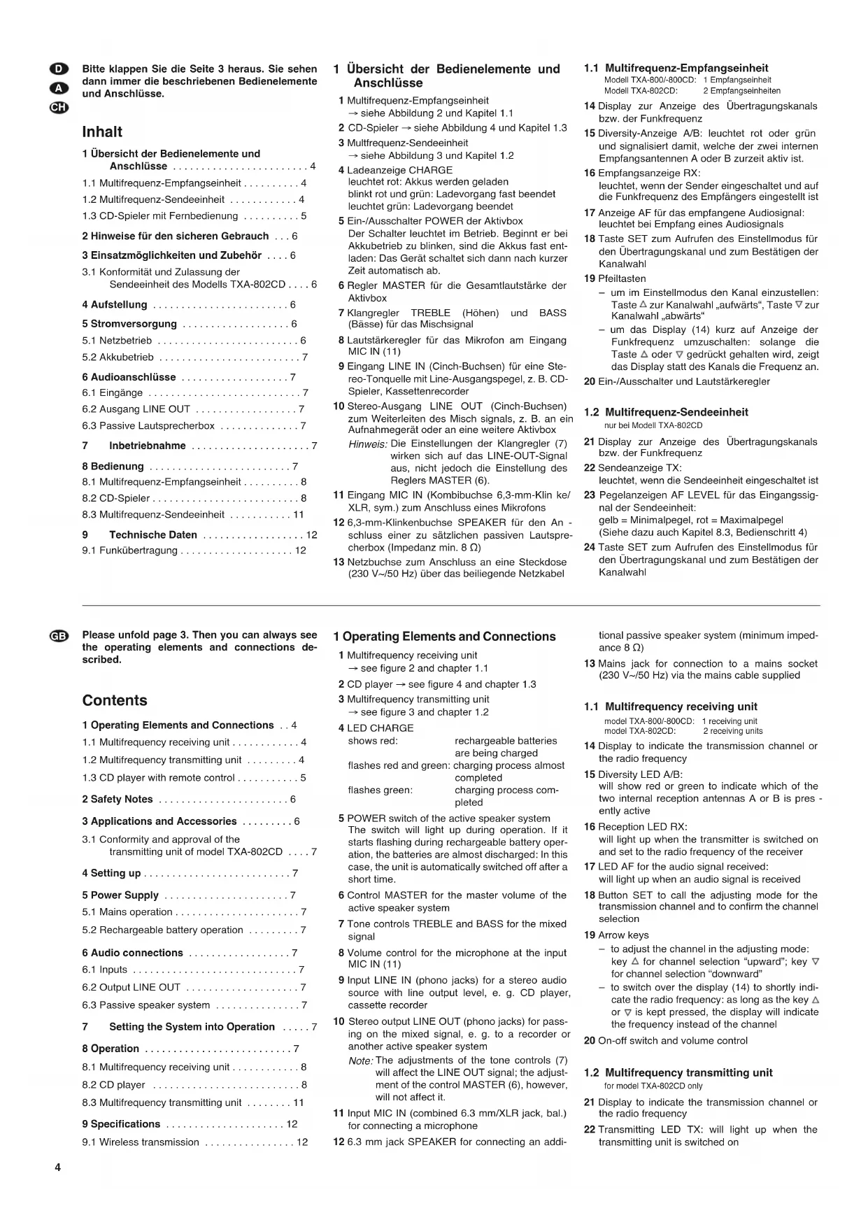 Modell TXA-802CD: 2 Empfangseinheit