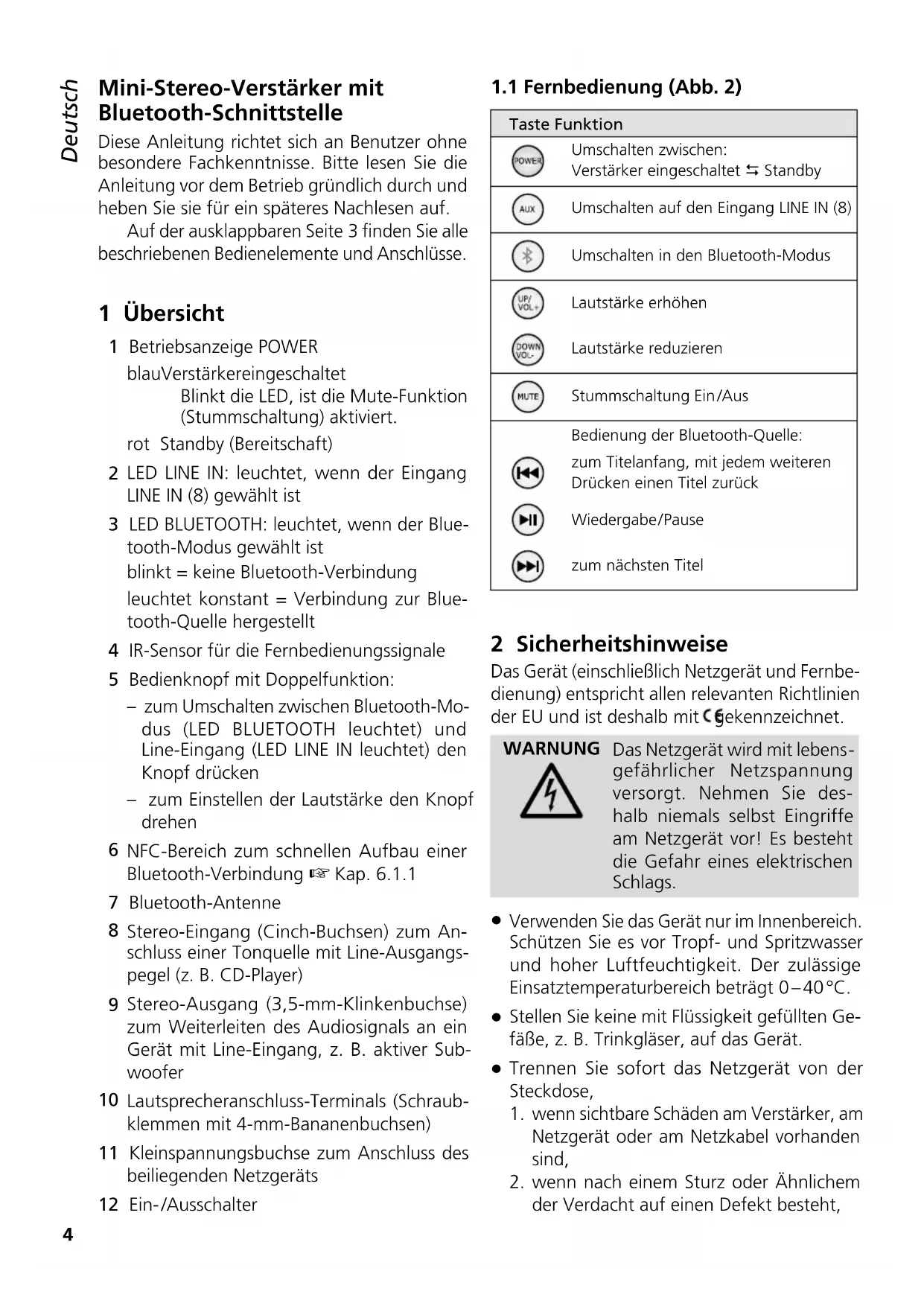 Auf der ausklappbaren Seite 3 finden Sie alle beschriebenen Bedienelemente und Anschlüsse.