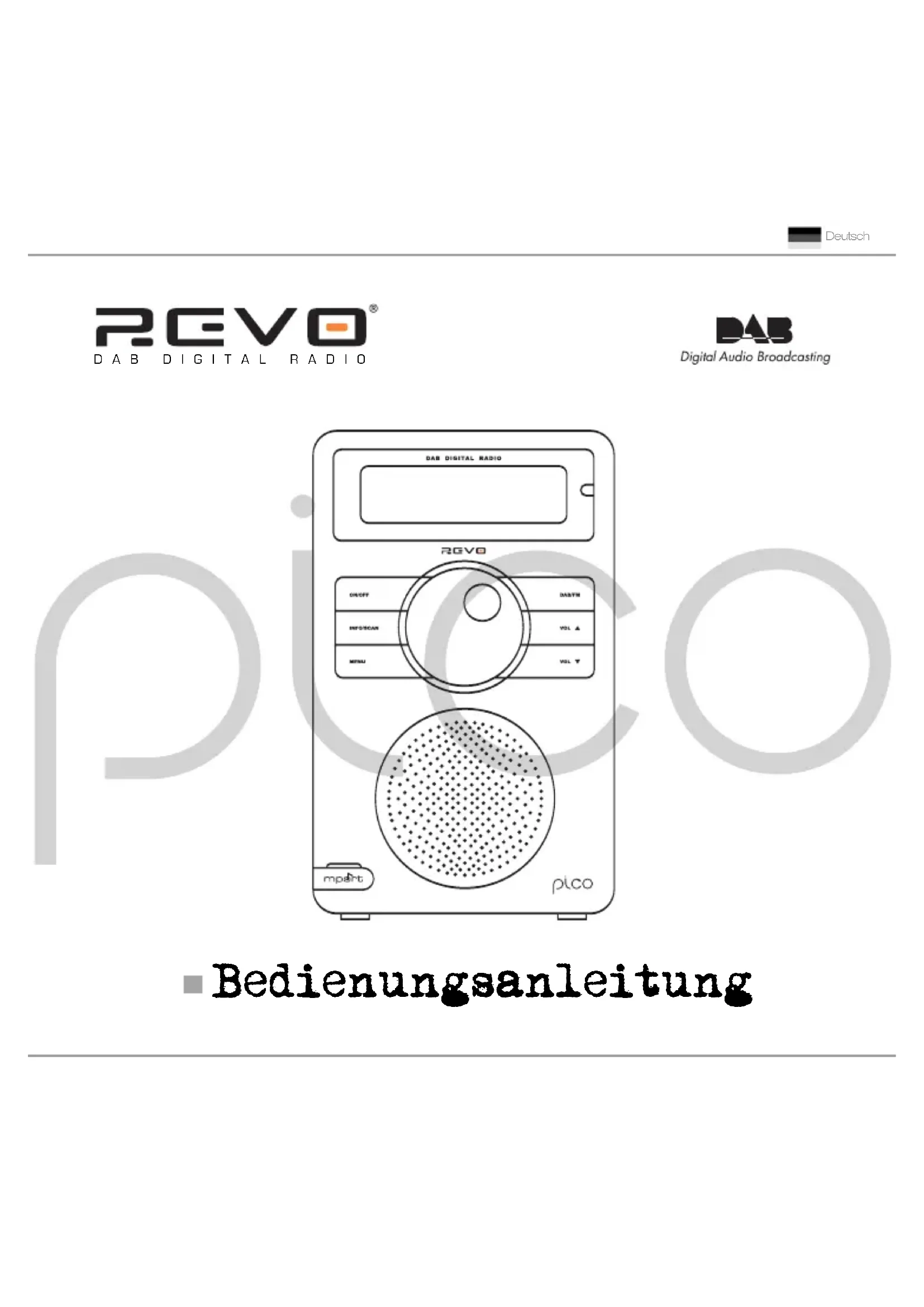 Laden Sie die Anleitung für Ihr Radio kostenlos im PDF-Format! Finden Sie Ihr Handbuch Pico WiFi - REVO und nehmen Sie Ihr elektronisches Gerät wieder in die Hand. Auf dieser Seite sind alle Dokumente veröffentlicht, die für die Verwendung Ihres Geräts notwendig sind. Pico WiFi von der Marke REVO.