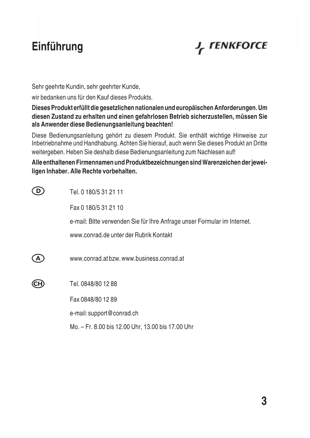 | These Bedienungsanleitung ist eine Publikation der Conrad Electronic SE, Klaus-Conrad-Str. 1, D-92240 Hirschau (www.conrad.com). |