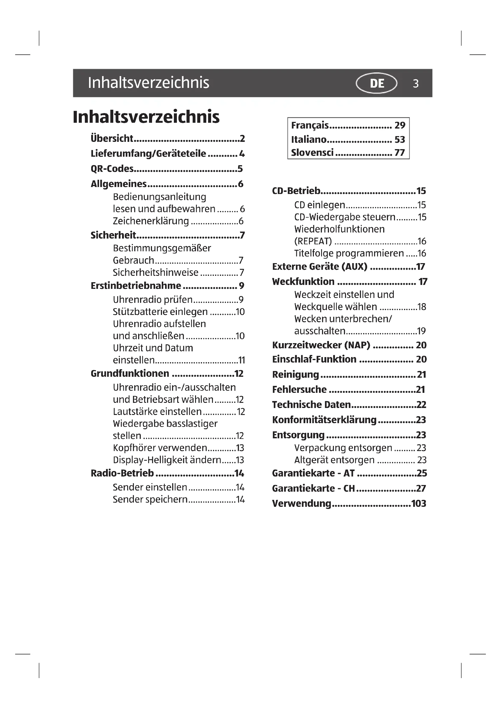 - Uhrenradio prüfen p. 9