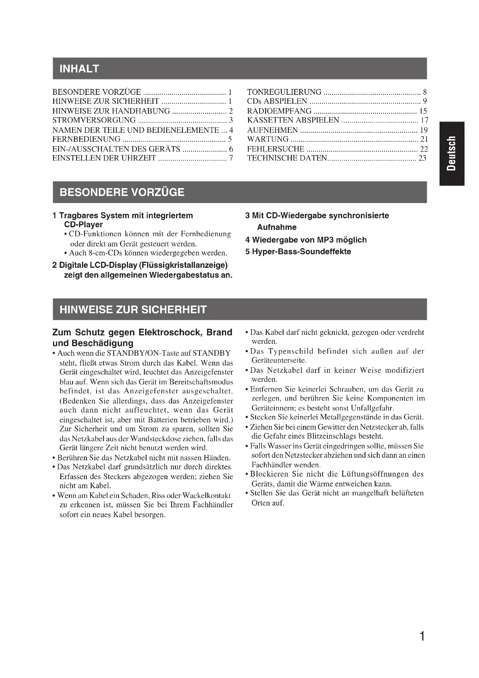 HINWEISE ZUR SICHERHEIT 1