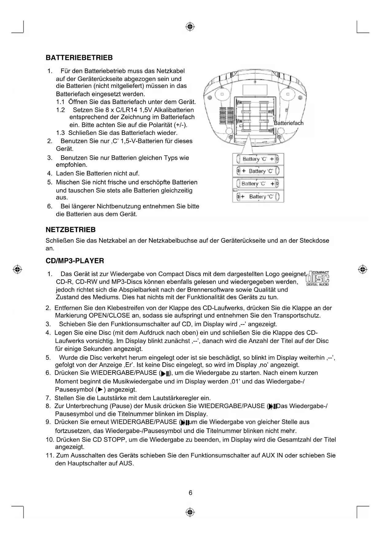 - Benutzen Sie nur, C' 1,5-V-Batterien für these Gerät.