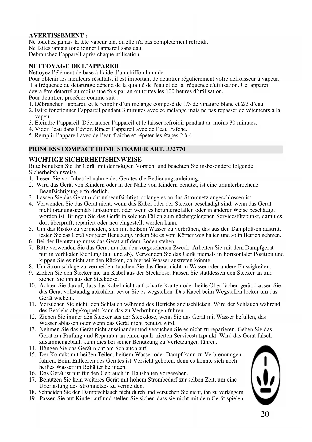 19. Passen Sie auf Kinder auf und stellen Sie sicher, dass sie nicht mit dem Gerät spielen.21