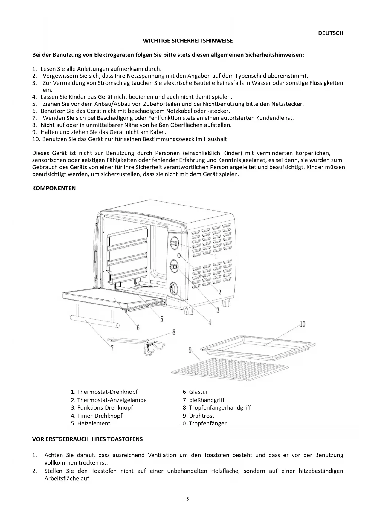 VOR ERSTGEBRAUCH IHRES TOASTOFENS
