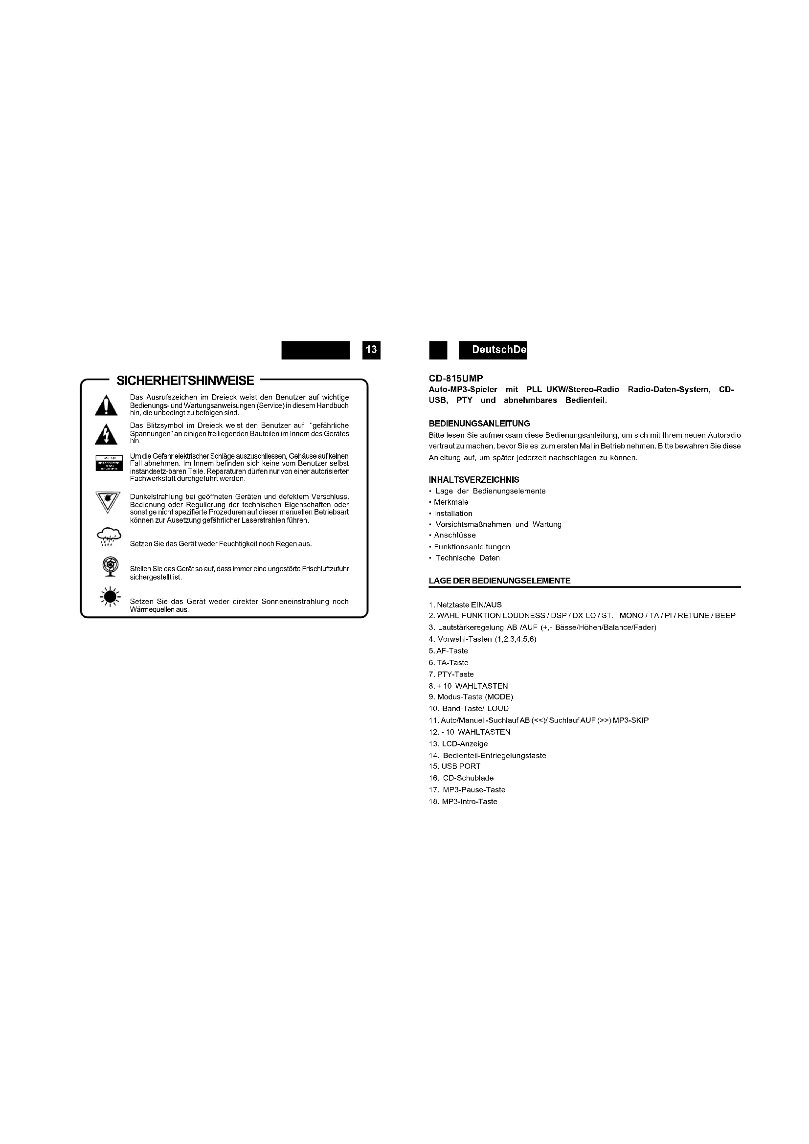 BEDIENUNGSANLEITUNG CD815UMP ROADSTAR