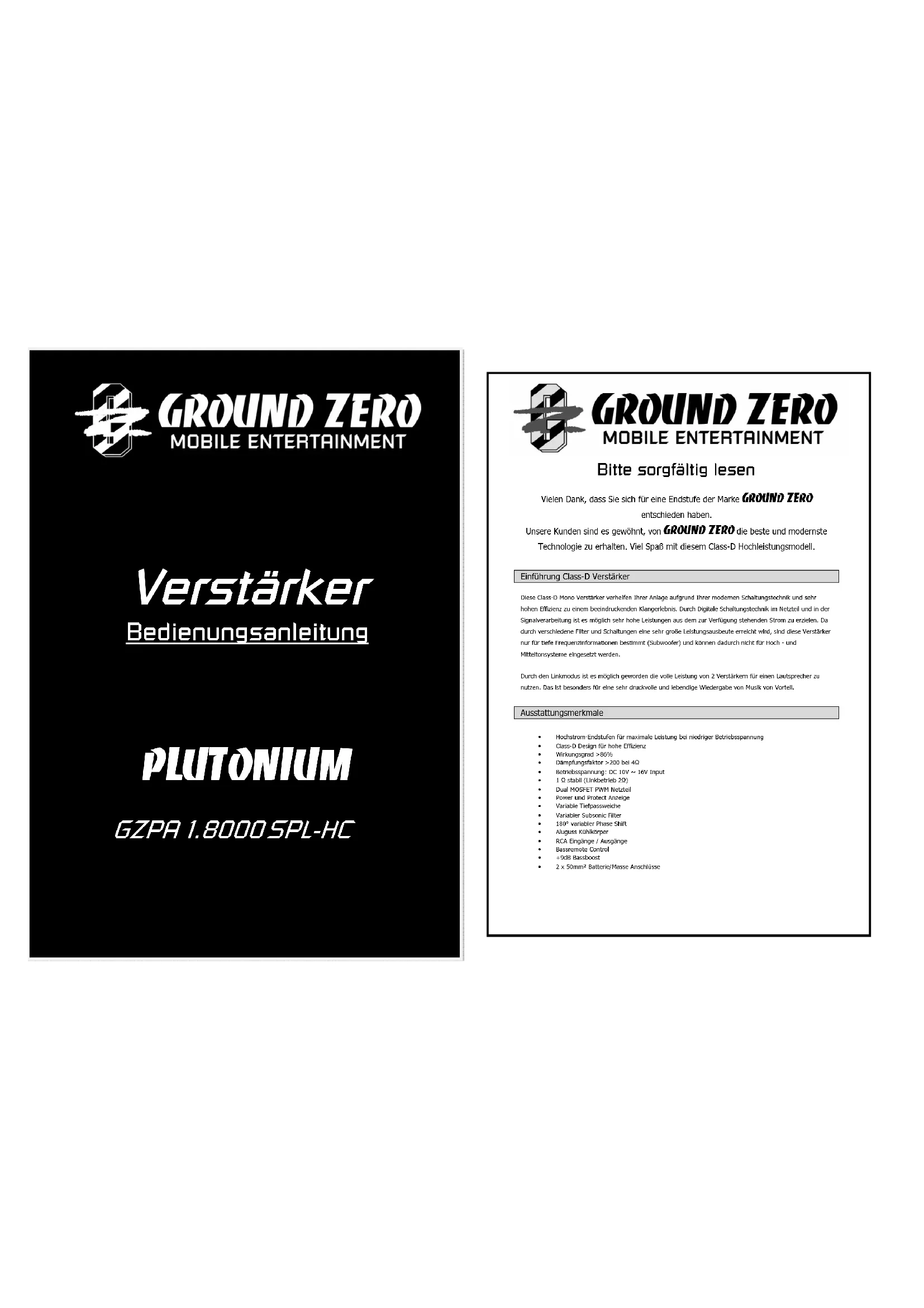 BEDIENUNGSANLEITUNG GZPA 1.8000SPLHC Ground Zero