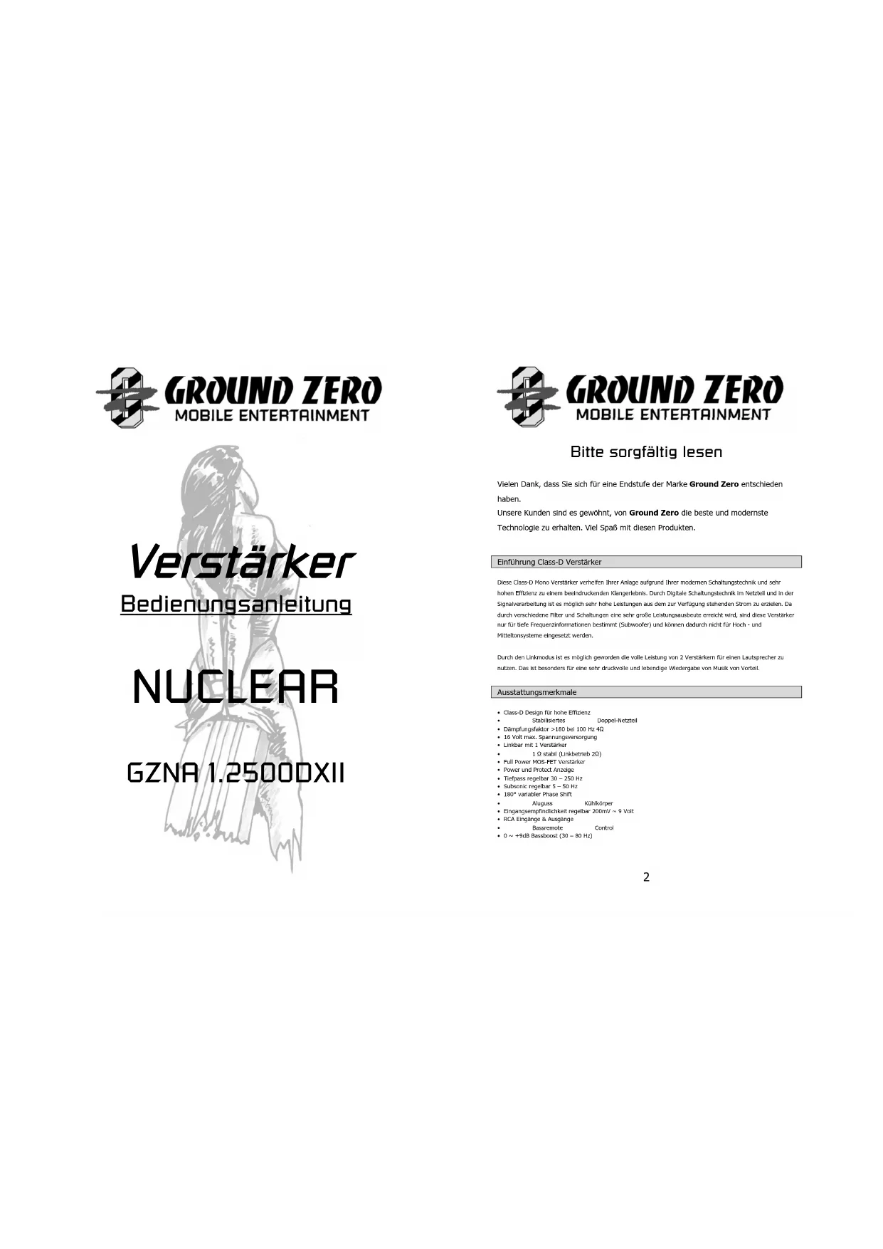 Finden Sie kostenlos die Bedienungsanleitung des Geräts GZNA 1.2500DXII Ground Zero als PDF.