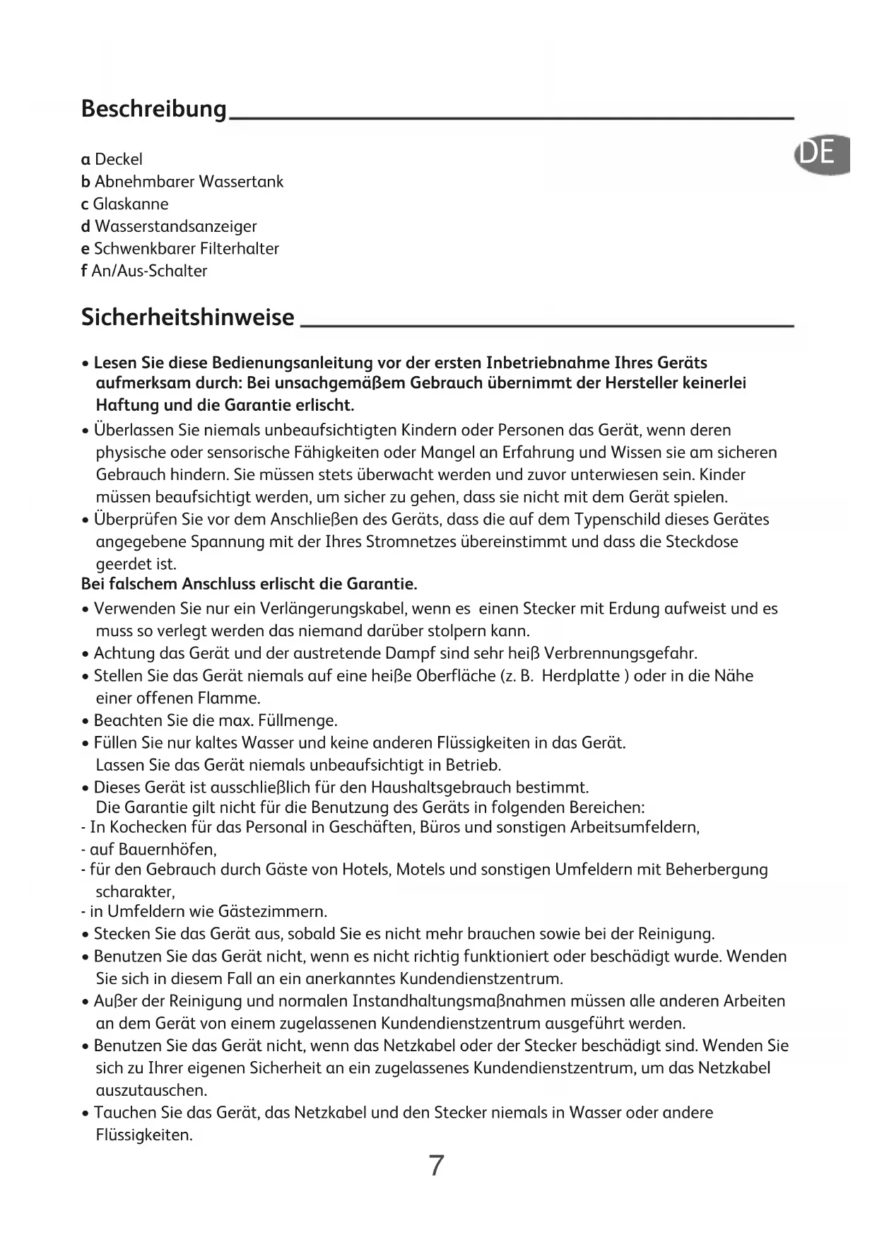 cafetie?re CM 330 CM 401 EU11 GR TU AR IR 10EC 5CEI 8000828280:Cafetière CM 330 CM 401 19/05/09 9:46 Page 6Beschreibung a Deckel b Abnehmbarer Wassertank c Glaskanne d Wasserstandsanzeiger e Schwenkbarer Filterhalter f An/Aus-Schalter Sicherheitshinweise