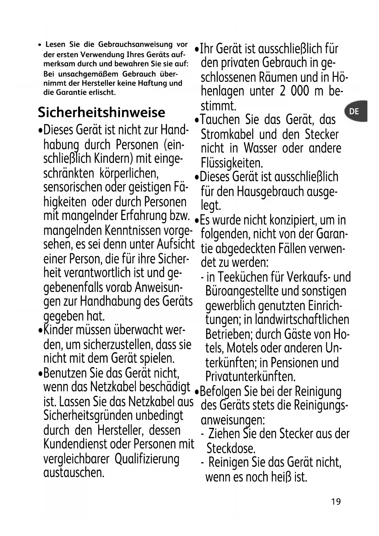 - Dieses Gerät ist ausschließlich für den Hausgebrauch ausge- legt.