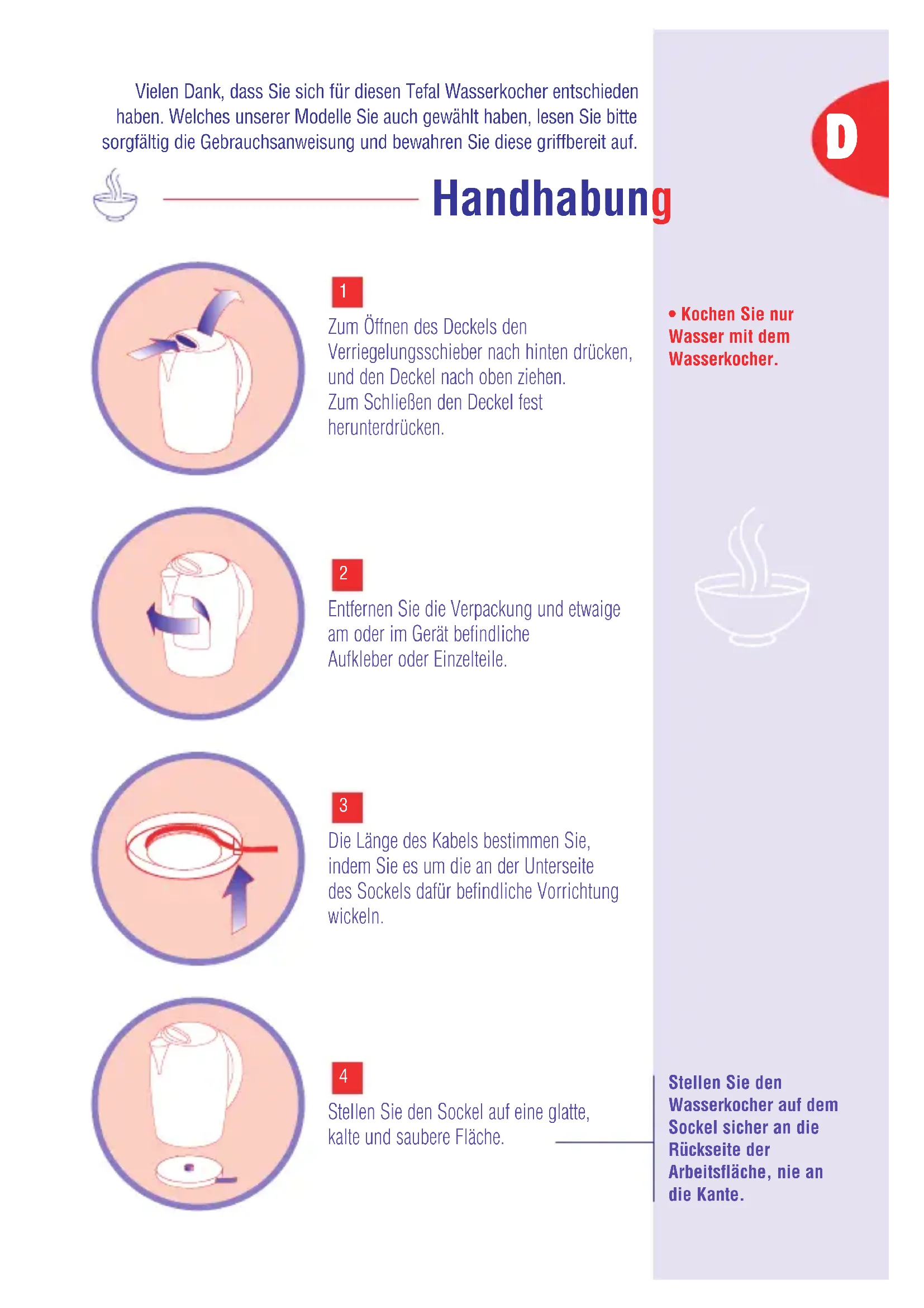 - Nehmen Sie niemals den Deckel ab, während das Wasser kocht.