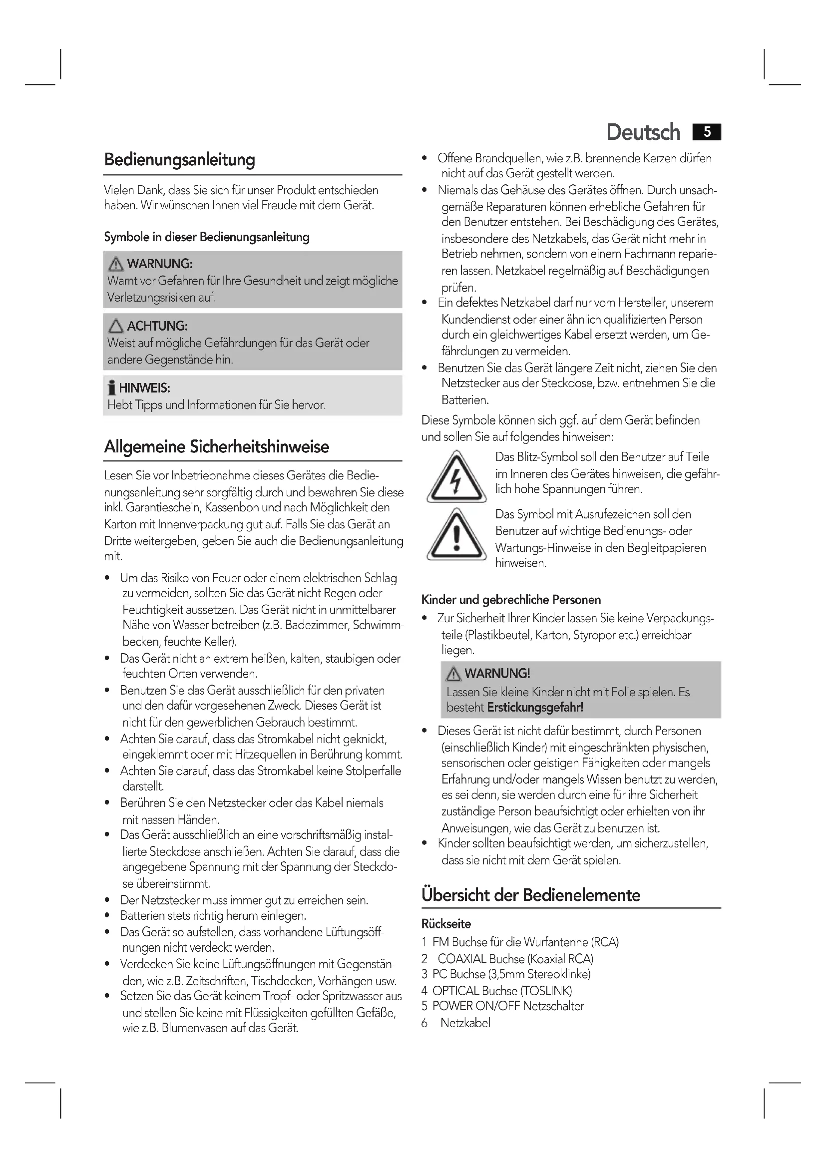 Lesen Sie vor Inbetriebnahme diesen Gerätes die Bedienungsanleitung sehr sorgfältig durch und bewahren Sie diese inkl. Garantieschein, Kassenbon und nach Möglichkeit den Karton mit Innerverpackung gut auf. Falls Sie das Gerät an Dritte weitergeben, geben Sie auch die Bedienungsanleitung mit.