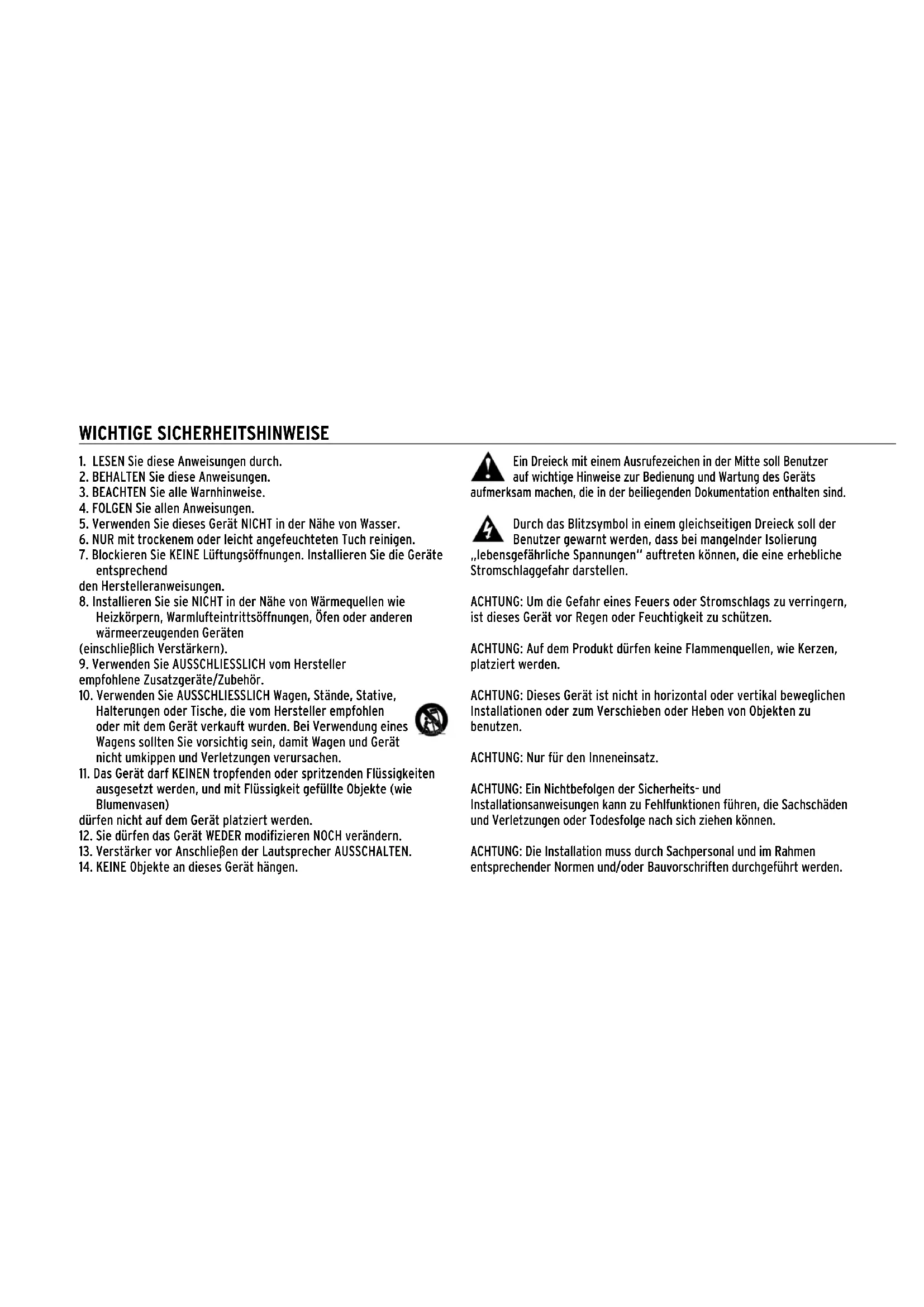 14. KEINE Objekte an dieses Gerät hängen.